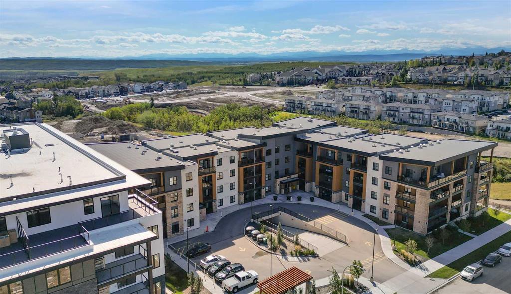 Located in the desirable Springbank Hill neighbourhood and just a short walk from the lively shops and restaurants at Aspen Landing, the 85th and Park boutique condos offer the ideal mix of city convenience and peaceful nature. Step into over 1,000 sq. ft. of well-designed living space with high ceilings. The open-concept living area is bright and spacious, with large windows that bring in natural light, perfect for dining and entertaining. The kitchen is a chef's dream, featuring upgraded stainless steel appliances, quartz countertops, soft-close drawers and extended cabinets. The large wrap-around patio offers a private ground level entry, making it a great spot for outdoor gatherings, complete with glass railings and a natural gas BBQ hookup. The guest bedroom and bathroom are separated from the main living area for added privacy. The primary bedroom comfortably fits a king-size bed and has a walk-through closet and private ensuite with double vanity. Other features include a titled heated underground parking stall, laundry room with in-suite storage, a separate assigned storage locker, secure bike storage rooms, upgraded luxury vinyl plank flooring throughout, and custom window coverings. This pet-friendly condo has in-floor heating and an upgraded feature electric fireplace. Enjoy living next to a protected ravine with walking paths and easy access to the 69th Street LRT, Westside Rec Centre, mountains, downtown, and the ring road. Built by Cove Properties, a top developer in Calgary, this condo offers high-quality craftsmanship and luxury living. Don't miss out!