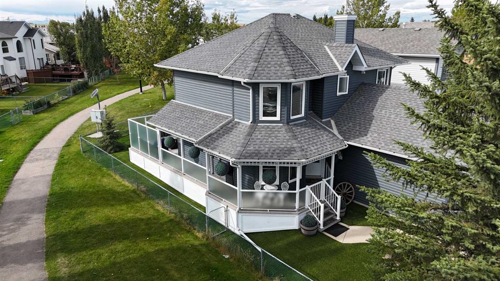 Welcome to 19 Woodside Crescent NW, meticulously maintained and extensively renovated 2-storey siding onto the pathway and backing West onto the park/greenspace. The unique turreted design, new; siding, eaves troughs & soffit lighting (2021) and turf grass give the home curb appeal that’s aesthetically pleasing. From the moment you step inside this jewel box, you'll be captivated by the warm, inviting atmosphere. The spacious living room (new carpet main & upper floor 2020) greets you with stunning natural light pouring in through the expansive and recently upgraded triple pane Lux windows. The kitchen is both functional and stylish (reno completed 2023), boasting a unique subway tile backsplash, ample upgraded cabinet space, corner pantry, quartz counters, laminate floors, and a raised breakfast bar that comfortably seats 3. Open to the dining room, this space is ideal for hosting family meals or casual gatherings and includes a functional built in pantry storage w tile backing, quartz counters and an interior open to below feature. A convenient 2-piece powder room is also located on the main floor, perfect for guests. Upstairs, the generously sized primary suite is a true retreat, complete with a charming sitting area, an oversized walk-in closet, and a luxurious 4-piece ensuite. The second bedroom is spacious and bright, while the main 4-piece bathroom offers convenience and comfort. You'll also appreciate the large, dedicated laundry room on this level—making chores a breeze (This 3rd bedroom was converted to a laundry room and could be converted back to a bedroom if the future need required). The fully finished basement (completed 2023) provides endless possibilities, featuring an expansive family room, a flex space that could serve as a home gym or entertainment area, and an office currently set up as a chic nail studio/salon. Additional features include a second laundry room, utility , and storage rooms—ideal for keeping everything organized. The high efficiency furnace, water heater and water softener were recently installed (2023). Step outside to enjoy your own private oasis—an immaculate, fully-fenced backyard where you can relax in the Hot Tub or on the massive, recently upgraded maintenance-free wrap-around West facing deck (dura deck w aluminum & glass railings), with a glass of wine. Walk the stamped concrete path to your outdoor firepit area. The inviting curb appeal is enhanced by a large, maintenance-free wraparound deck, and the attached garage with extra driveway parking adds to the home's convenience. Situated next to a park with scenic walking and bike paths, this property is perfectly located for families, just a short walk from Benkie's Lagoon, schools, shopping, and Woodside Golf Course. This home is truly move-in ready and waiting for its next loving owner. Don't miss your chance to experience everything this home has to offer—schedule your showing today!