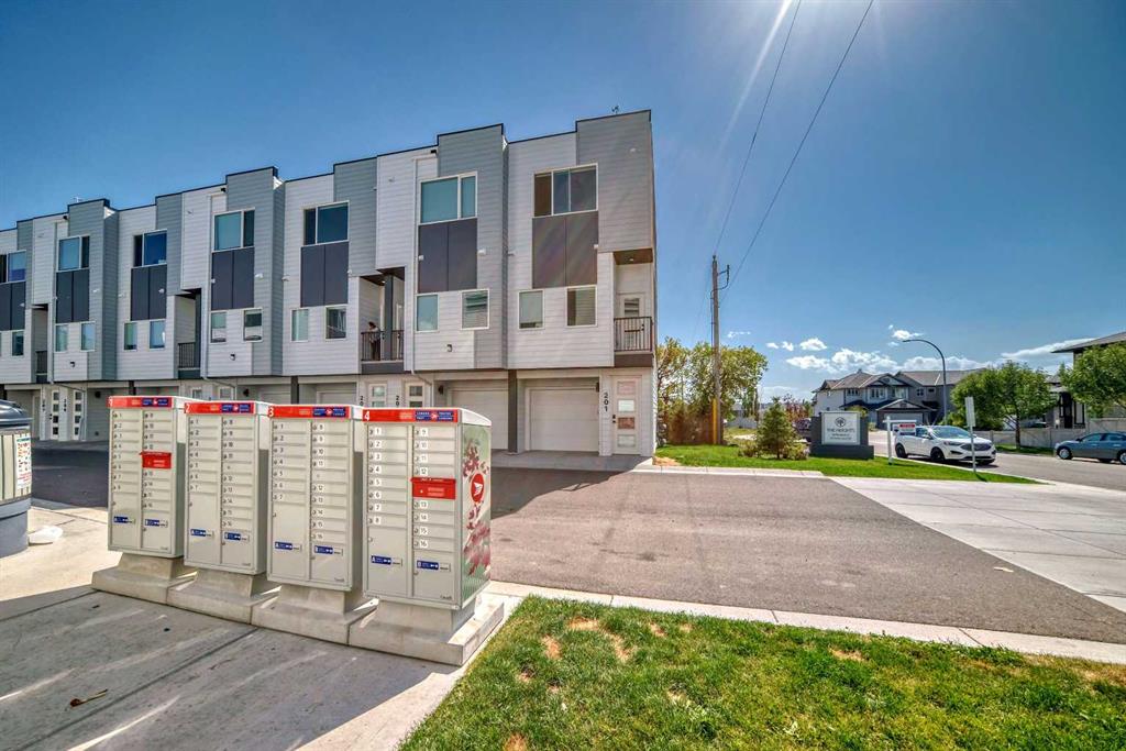 WELCOME HOME! This stunning and bright, 3-story townhouse features 2 bedrooms, 2.5 bathrooms, ample storage, and an open concept layout that is perfect for entertaining. Located in the desirable community of Panorama Hills, this cozy home is just steps away from green spaces and schools. The unit includes a balcony, ideal for those wonderful BBQ days. As you step into this well-laid-out townhome, you'll be greeted by impressive 10-FOOT ceiling on the main floor and 9-FOOT ceiling in the bedrooms, complemented by an abundance of natural light pouring through the large windows. The modern kitchen is complete with nicely finished cabinets, quartz countertops and BRAND-NEW stove and microwave hood fan. The kitchen overlooks the dining area and a spacious living room which features gorgeous luxury vinyl plank. The open floor plan is perfect for hosting and entertaining! Head upstairs to the good-sized primary bedroom which is complete with two closets and a 4-piece ensuite bathroom! The second bedroom also offers two closets and a large window. The tandem garage is an added bonus! Use it as a garage, or convert it into a gym space -This home has it all! With quick access to countless amenities - North Trail High School and the Vivo Centre. this home offers unbeatable convenience. This move-in-ready home provides maintenance-free living with low condo fees, perfect for investors or first-time buyers. Don't miss out!