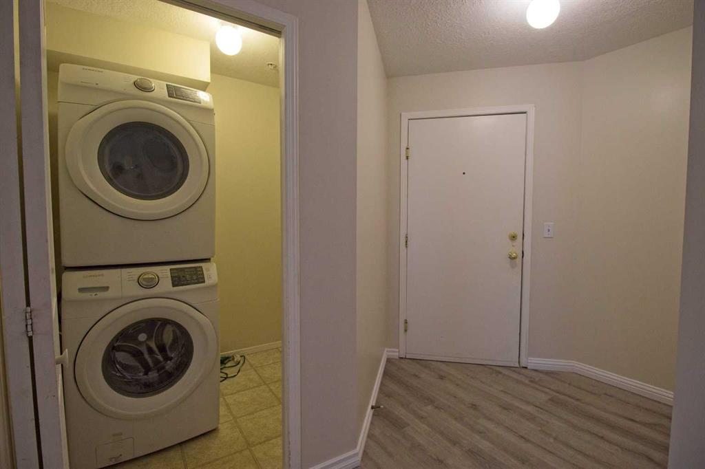 *** IMMACULATE 2 BEDROOM / Fully Renovated 2 Bedroom and 2 BATHROOM CONDO IN SOUGHT AFTER SOMERSET *** Great, modern floor plan with an open concept kitchen, dining and living room with sliding door to a welcoming concrete patio. Privatively set bedrooms on the opposite sides of the unit, each with its own bathroom, allow independent living space ideal for a young family, roommates or a home office. Brand new LVP flooring and carpet, ceramic tile floors, spacious closets, ceiling fans and oversized shower are some of the features of this terrific condo. Complimented by large kitchen with new quartz countertops and a raised eating bar and SS appliances, (brand new electric stove) as well as a large in suite laundry room (with stacked W/D) this truly is a great find. One heated parking stall in secure, underground parking (on title) along with a large storage cage are also included. Convenient location, 2 min. walk to SOMERSET LRT station, close to shopping and all amenities. Move in and enjoy! Fantastic buy for first time home buyers or investors. Condo fees include all utilities. Don't miss this one!!!