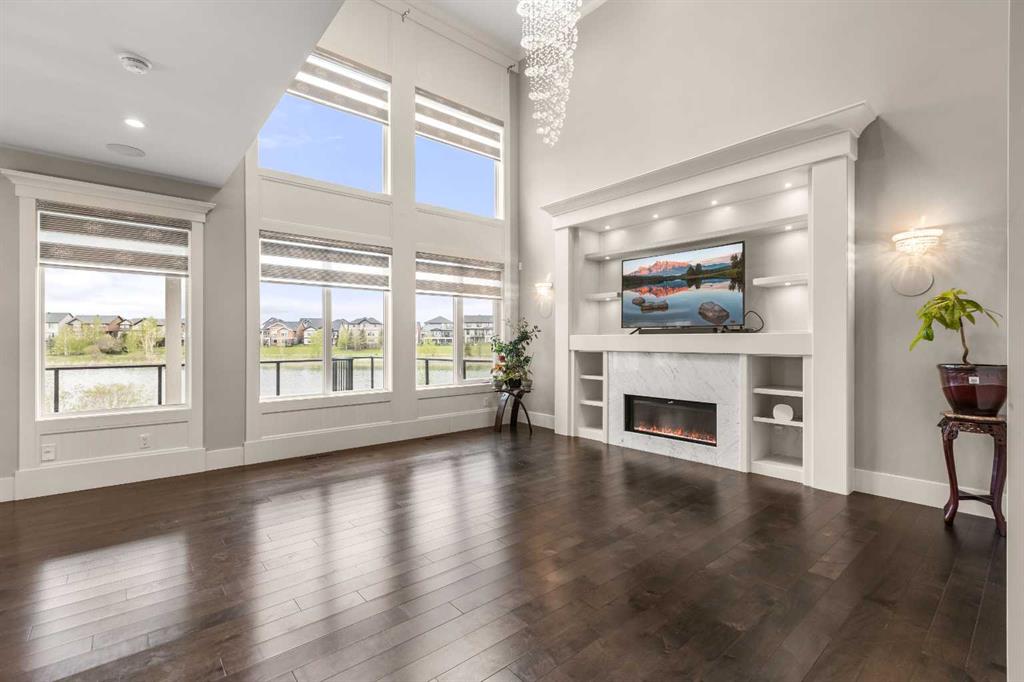 This executive luxury property epitomizes the pinnacle of refined living, offering an unparalleled blend of elegance and comfort. Nestled against a serene pond and picturesque pathways, this custom-built 2-storey home spans over 4500 square feet, redefining opulence with its meticulously crafted design. Entering this abode, you are greeted by an aura of sophistication that permeates throughout. Boasting a total of 6 bedrooms and 5 bathrooms, including multiple master suites, this residence offers abundant space for both family and guests. The master bedroom is a sanctuary of indulgence, featuring a lavish 5-piece ensuite and a generously sized walk-in closet, ensuring a retreat-like experience. The heart of the home, the chef's dream kitchen, is a culinary haven equipped with top-of-the-line stainless steel appliances and exquisitely crafted cabinetry, elevating the art of cooking to new heights. Adjacent to the kitchen, the living room beckons with its soaring ceilings and a cozy gas fireplace, creating an inviting ambiance for relaxation and entertainment. The main floor further boasts a den/office, a convenient laundry room, and a tastefully appointed 2-piece bathroom, providing both functionality and style. Ascending to the upper level, you'll discover four additional bedrooms, including another master suite, offering versatility and comfort for every member of the household. A sprawling bonus room awaits, providing an ideal space for leisure and recreation, complemented by a balcony offering captivating views of the tranquil pond. Throughout the main floor, hardwood flooring adds warmth and sophistication, enhancing the home's aesthetic appeal. Step outside to the extended deck, where summer BBQs and gatherings are elevated by the serene backdrop of the pond, creating an idyllic setting for outdoor enjoyment. A concrete pathway leads to the fully developed walk-out basement, which offers additional living space, including two bedrooms, a full bath, a family room, and a bar area, currently rented, providing potential for additional income or versatile usage. Conveniently located close to schools, shopping plazas, and Chestermere Lake, with easy access to 16th Avenue, this property seamlessly combines luxury living with everyday convenience, offering a truly unparalleled lifestyle experience.