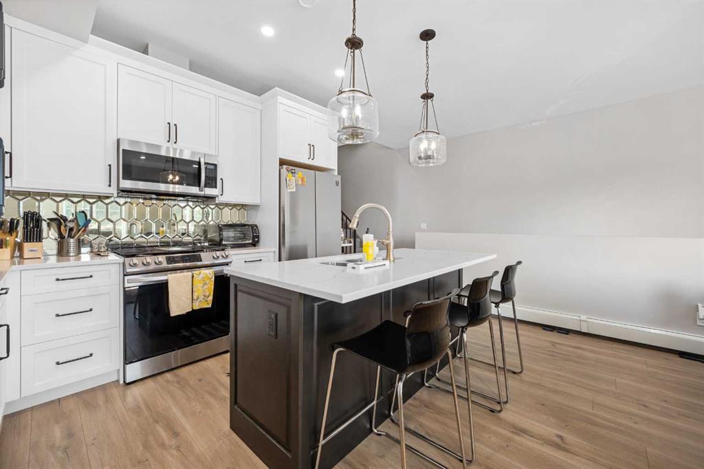 YOU WILL NOT FIND ANOTHER DEAL LIKE THIS! BEST price per square foot in the area! and it gets better, the condo fees include ALL your utilities (water, electricity, and gas)! This new construction (2022) includes high quality construction and finishes. This building uses steel frame on the exterior, real brick, and iron flower pots + more. Inside you will find high quality carpet on the stairs and high quality LVL everywhere else. Quarts countertops and a gas range to complement the chefs kitchen. This is a 4 bedroom + a bonus room that can easily be turned into a stunning primary bedroom with it's own ensuite balcony. But the "piece de resistance" is the rooftop patio looking down on the Calgary skyline. The building also features TELUS fiber optic for high-speed internet. Investors will find opportunities to cater to young professionals or well-funded college students, and Airbnb rentals are a viable option for short-term or medium-term stays. The location is just a 12-minute drive from the airport. Neighbors attest to the convenience of commuting downtown—whether by car or on foot. Driving is quick, and a leisurely walk to downtown takes 30 to 40 minutes. There are several grocery options nearby but the coolest is that homey vibe of the one across the road.