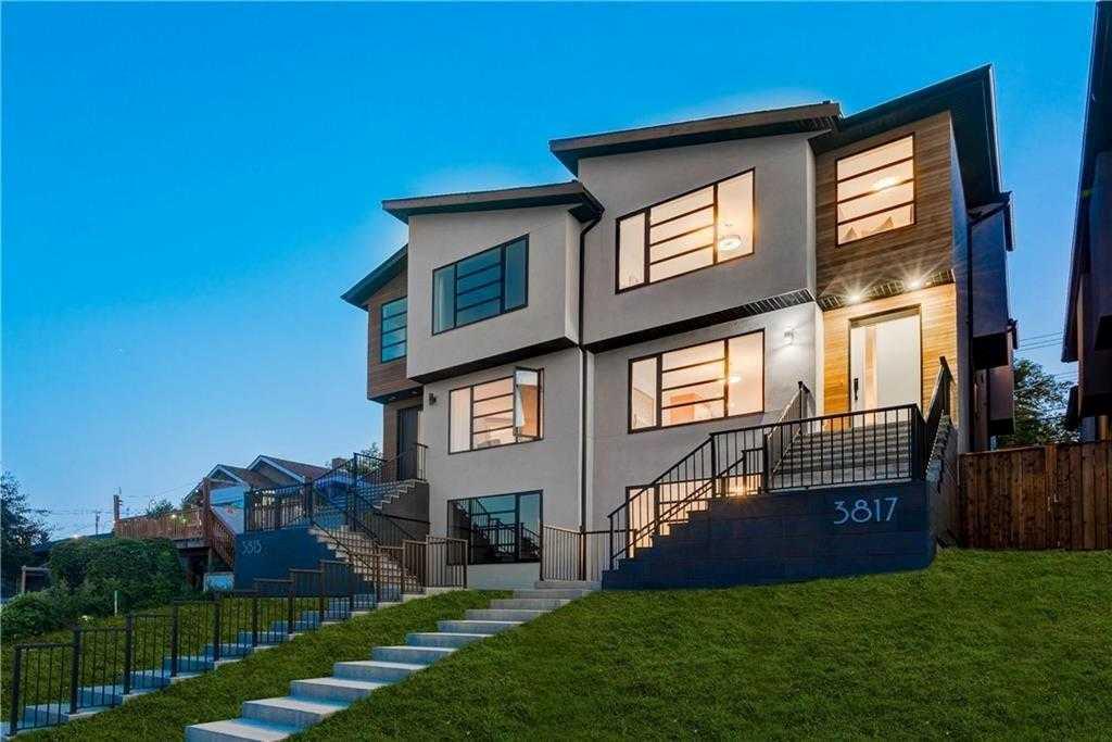 Welcome to this fully upgraded, custom built semi-detached home in Highland Park, close to Downtown and Calgary International Airport, over 2700 sqft area with fully finished basement. As you enter, you will be greeted with open concept high ceiling main floor living area with lots of natural light, hardwood flooring, fully upgraded kitchen with 2 tone cabinets with quartz countertops, extended kitchen island with bar seating, wine rack as well , dining area, living area with stone around fireplace along with built-ins on both side of fireplace, a mudroom and 2pc powder room at main floor. Further going to upper floor with glass railing on stairs, you will be greeted with huge primary bedroom with vaulted ceiling and lots of natural light, large walk-in-closet with built in organizers, 5pc en-suite with dual sinks, skylight, freestanding tub and standing shower as well. Laundry room conveniently situated at upper floor, 2 other good size bedrooms, 4pc bathroom and a open office space/play area completes this floor. In the basement, you will find a large rec/living room with wet bar, 4pc bathroom, bedroom with closet, utility room and storage. There is also a double detached garage with back alley and low maintenance back yard.