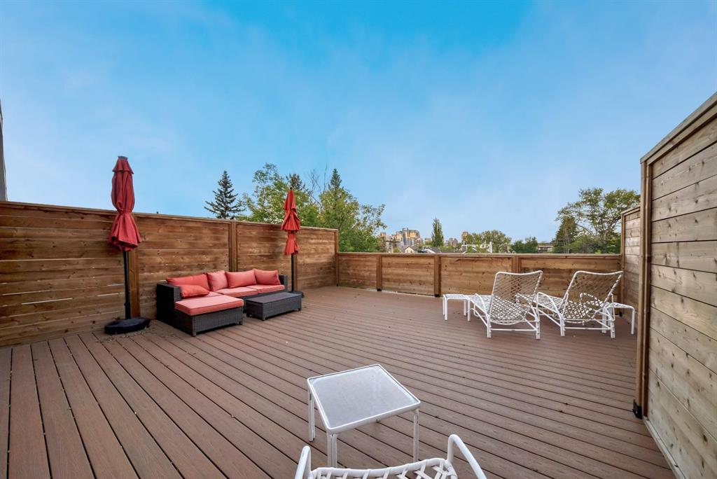 Experience the pinnacle of urban sophistication on this stunning rooftop patio with a newly updated duplex located in the prestigious Bankview Community. The living area seamlessly transitions into the dining space, creating a warm and welcoming environment as soon as you enter the home and is perfect for entertaining guests or enjoying quality family time.The Gourmet Kitchen: Featuring top-of-the-line appliances, generous counter space, and stylish cabinetry, this kitchen is designed for both practicality and elegance. Each bedroom boasts ample space and an abundance of natural light, while the primary suite includes a sophisticated ensuite bathroom with modern fixtures. The upper patio deck is perfect for social gatherings, the upper deck not only offers stunning views of downtown but also serves as an intimate retreat for relaxation. The fenced backyard provides a safe haven for children and pets, being fully fenced while ensuring low-maintenance enjoyment. Enjoy the community highlights with the close proximity to amenities. Experience the convenience of living close to trendy cafes, shops, and parks, all just a short walk away or With nearby public transport options, commuting to work or exploring the city is effortless. Bankview is a vibrant community and It offers a unique combination of urban energy and suburban peace. The diversity of the neighborhood enhances the appeal of living in this sought-after area. This updated duplex is more than just a residence; it represents a lifestyle. Discover the comfort, convenience, and charm that Bankview has to offer. Contact us today to take the first step in making this exceptional property your own!