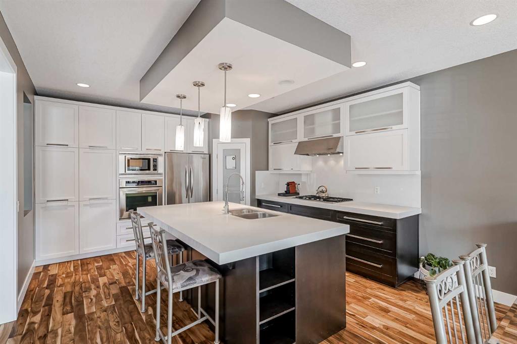 Discover the epitome of refined living in this meticulously crafted 5-bedroom, 3.5-bath estate nestled in the prestigious Evanston community. Step into an exquisitely designed open-concept layout adorned with soaring 9-foot ceilings, expansive windows, beautiful light fixtures, and lustrous hardwood flooring. The inviting living area features a charming fireplace, while the very unique chef's kitchen boasts a walk-through pantry, premium built-in appliances, a gas stove-top, contemporary cabinetry, quartz countertops, and a central island, ideal for hosting gatherings. Adjacent, the sunlit dining room offers seamless access to the west-facing backyard. Upstairs, a thoughtfully planned layout includes a spacious bonus room with vaulted ceilings, an indulgent master retreat with a spa-inspired ensuite featuring dual sinks and a sizable walk-in closet. Additionally, two generously sized bedrooms with walk-in closets, another versatile bonus space, and a convenient laundry room enhance the upper level. The fully finished basement presents two well-appointed bedrooms, a full bathroom, and a cozy family room, perfect for both entertainment and relaxation. There is an area behind the family room with gorgeous dark cabinets, perfect to set up as a bar or kitchen-like setting. Embrace the charm of this vibrant community, ideally situated for families, with close proximity to schools, shopping, amenities, and easy access to major thoroughfares.