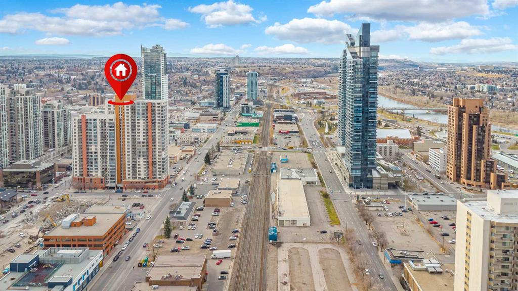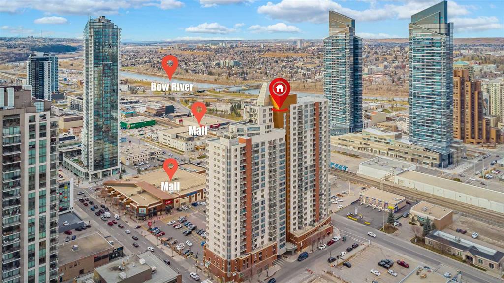 Stunning 21st Floor West facing corner unit with Breathtaking Views of Downtown Calgary and the Bow River. Excited to introduce this beautiful 2-bedroom, 1-bathroom condo with 651 sq/ft of living space, this condo is a must-see! Enjoy the magnificent Bow River views from the living room, whether you’re dining or enjoying a relaxing tea time. The expansive, open-concept kitchen connects seamlessly with the living area, enhancing the bright and airy atmosphere. The incredible city and river views are not just limited to the living room – the master bedroom also boasts the same stunning vista. The condo is well-appointed with ample closet space in both bedrooms and in-suite laundry with a washer and dryer. The 4-piece bathroom features a brand-new toilet and provides plenty of space for comfort and convenience. This building offers fantastic amenities, including 24-hour security and ALL-INCLUSIVE UTILITIES – HEAT, WATER, & ELECTRICITY. Additionally, you'll find a bike storage area and a fully-equipped gym. For added convenience, the building’s first floor includes a walk-in clinic and dental office, making healthcare easily accessible. There’s also a Co-op grocery store just a 1-minute walk away, and a car wash across the street. An organic grocery store is only a 5-minute walk away. This would make a great rental property in the hot Calgary rental market. Don't miss your chance to experience this amazing condo with unparalleled views and incredible amenities. Schedule your viewing today!