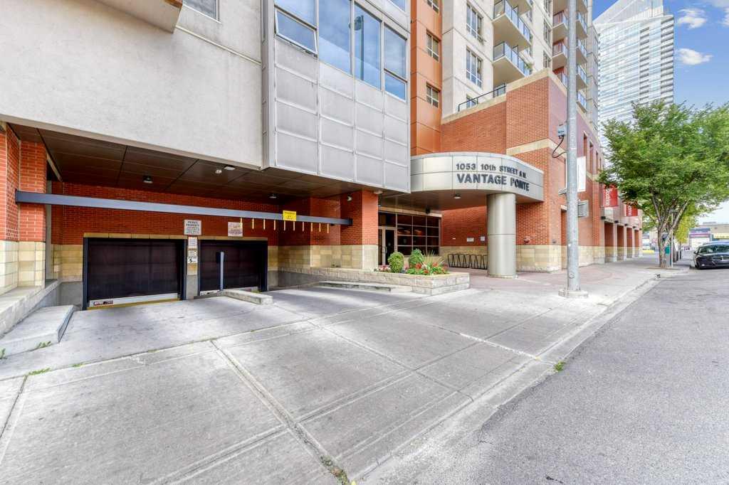 This is One of the most sought after two bedroom floor plans at Vantage Pointe with EXTRA large windows around entire living room looking onto Downtown, Bow River and Rocky Mountains. The open concept and well designed kitchen features GRANITE counter tops, NEWER appliances, custom TILE FLOORING, gorgeous MAPLE CABINETS, your own PRIVATE BALCONY overlooking downtown Calgary and if this was not enough, this unit comes with one HEATED underground titled parking STALL. The building also features a fitness center, and an ideal walk score of 87. Grocery store is conveniently located across the parking lot and you are within walking distance of Bow River & its pathway system, public transit, restaurants and all downtown buildings & amenities. Condo fee include all utilities, onsite bike storage and 24hr concierge/security. Don't hesitate and CALL TODAY for your private viewing!
