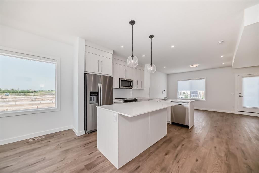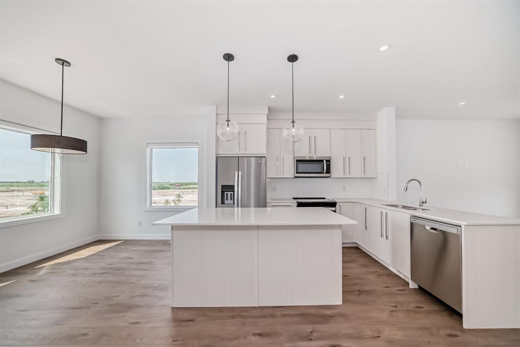 Aberdeen Townhomes by Truman! Experience the charm of this exquisite 4-Bedroom End-Unit Townhome, nestled in the thriving and vibrant community of Chelsea. This exceptional home offers unparalleled convenience with nearby playgrounds, scenic pathways, and shopping options, all within a welcoming and dynamic neighborhood. Step inside to discover a beautifully designed living space featuring 4 bedrooms, 2.5 bathrooms, and an attached double heated garage. The main floor includes a versatile bedroom that’s ideal for guests or a home office. The interior showcases top-tier finishes and craftsmanship, including elegant Vinyl Plank flooring throughout the main living areas and high ceilings. The gourmet kitchen is a chef’s delight, featuring Full-Height Cabinetry with soft-close Doors and Drawers, a sleek Stainless Steel Appliance package, and a storage pantry. The Eat-Up Bar, highlighted by stunning Quartz Countertops, offers a stylish spot for casual dining and entertaining. The Primary Bedroom serves as a serene retreat, complete with a spacious walk-in Closet and a luxurious 4-piece Ensuite bathroom. The upper level is thoughtfully designed with two additional Bedrooms, a 4-piece Main Bathroom, and convenient upper-floor Laundry, ensuring comfort and practicality for the entire family. Bright and airy, this move-in-ready home is an invitation to elevate your living experience and embrace the refined Truman lifestyle. Seize the opportunity to make this exceptional townhome yours today! *Photo gallery of similar unit*