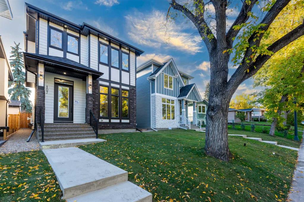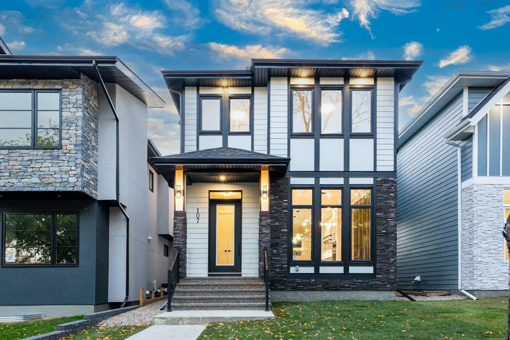 Welcome to this brand-new executive home over 2800 square feet developed living space located on a calm street with large trees in the desirable community of Highwood. This house must be viewed in person to truly appreciate the design and the attention to detail. The beautiful exterior features a combination of stone, smartboard, and Hardie siding, which creates a striking first impression. Upon entering, you’ll find a convenient bench backed with a stylish feature wall and a large closet for ample storage. The spacious dining area flows seamlessly into the large, paint-grade quartz top kitchen, which boasts a long waterfall island. The kitchen is equipped with built-in stainless steel KitchenAid appliances, including a 36” gas cooktop, built-in oven and low-profile microwave, silent dishwasher, and fridge with exterior water and ice dispenser. Having a dedicated quartz top work/study desk on the main floor is a great touch for those who work or study from home. The actual spacious living area includes a tiled feature wall with an over 4-foot electric fireplace and a sliding door to the patio, perfect for summer BBQs and outdoor entertaining. The mud room offers a bench and ample storage space. The main floor ceilings are an impressive 10 feet high and feature modern lighting fixtures. The upper floor offers a beautiful chandelier in the staircase and a 9-foot-high ceiling. The primary bedroom offers an ensuite bathroom finished with gorgeous tiles which include a customed shower, freestanding oval bathtub, floating double sink vanity, and a large walk-in closet equipped with a sun tunnel to bring natural light in. The upper floor also includes two additional good-sized bedrooms, each with their own walk-in closets—a rare feature in similar properties. A 3-piece bathroom and a good-sized laundry area with a sink complete the upper level. The basement features 9-foot ceilings and large windows. This bright basement includes a master sized bedroom with a huge walk-in closet, a 3-piece bathroom, a spacious recreational room to hold indoor parties, and a fabulous wet bar. This home is built with fine planning and equipped with various rough ins, including central air conditioning, security cameras and sensors, built-in speakers, central vacuum, projector setup, and hydronic heat for the basement flooring. The master plan was designed with modern conveniences in mind and gives you the option to choose your best finishing products to complete the rough ins (if required). There is also a detached finished insulated double garage with back lane access. This home will come to you fully landscaped which will be completed in the coming days. Centrally located in Highwood, this home offers quick access to McKnight Blvd, Deerfoot Trail, downtown Calgary, schools, and numerous amenities.