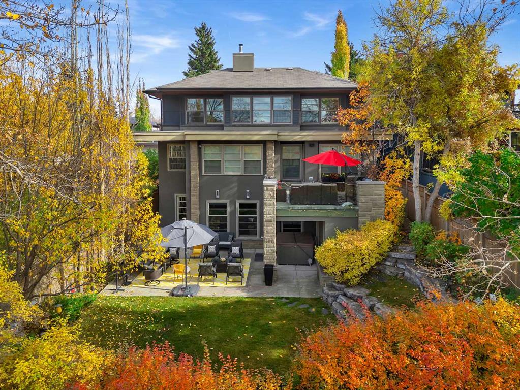 This extraordinary property is timelessly elegant. It offers almost 5500 SqFt of finished living space with high-end imported finishings and a treed sightline from almost every window in the home. Located on a coveted 50x120 lot backing onto Confederation Park, this property is rare and exclusive. Stepping into the home, a soaring ceiling and tall window greet you, where natural light dances from the East morning sun. Merbau hardwood floors flow through over 3000 SqFt, which offers a main floor office, formal dining room, open-concept living room, kitchen, and additional dining space. Every vantage point overlooks Confederation Park and exudes privacy and luxury. The kitchen is a chef and entertainer's dream with ample Zebrano cabinetry, notable top-of-the-line appliances such as an espresso bar, a 4' Wolf range, a sub-zero wine fridge, and a stunning Azul Aran granite waterfall island imported from Italy. A spacious pantry off the garage, mudroom, and powder room complete this floor. Follow the impressive stairwell upstairs to a gallery-like landing, where you are greeted with a bonus room with a quaint patio, two spacious bedrooms with walk-in closets, and a 5-piece jack-and-jill bathroom with intelligent features like built-in stepping stools for the kids to brush their teeth. The primary suite is a true sanctuary with romantic vaulted ceilings, a fireplace surrounded by Calcutta marble, and stunning park views. His-and-hers closets with built-ins will meet any discerning buyer's needs, and the luxurious ensuite is a masterpiece with heated floors, a soaker tub, a steam shower, double sinks and artistic mosaic tiles. Head down to the finished walkout basement with heated concrete floors, offering ample room for games and relaxation. A dedicated gym space will keep you in shape, and you can pick your favourite bottle from the cedar wine cellar to take outside and unwind at the end of the day in the WEST backyard, a private retreat. An additional bedroom with an ensuite bath, steam room, and 3-piece bathroom complete the basement. The property is conveniently located minutes from downtown and near the airport. There are excellent schools in the area and a plethora of outdoor amenities.