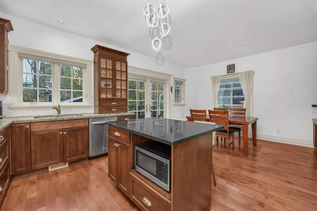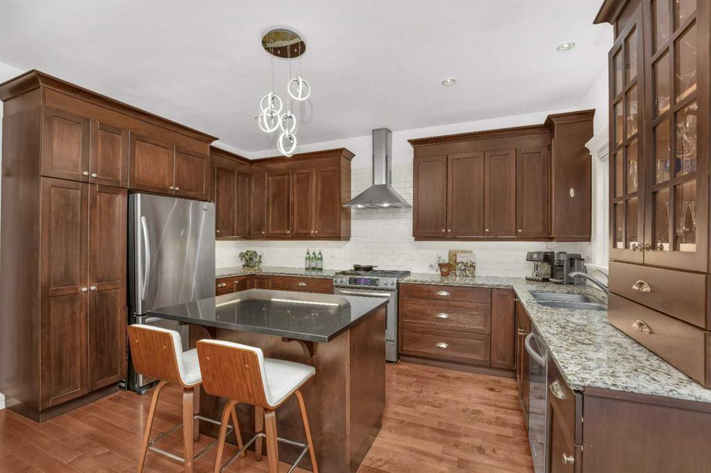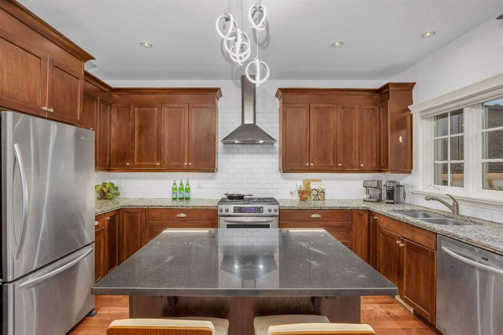 Public Remarks Step inside this remarkable half duplex, in the highly sought-after community of Marda Loop. With 5 bedrooms, 3.5 baths, and nearly 2,800 sqft. of beautifully developed living space, this home seamlessly blends comfort, convenience and sophistication. The main floor is open and inviting, with large windows filling the space with tons of natural light. Beautiful hardwood floors guide you through an inviting living space centred around a cozy gas fireplace, extending into a spacious dining room. Elegant crown molding adds a refined touch throughout, elevating the overall aesthetic. The gourmet kitchen is a chef’s delight, equipped with premium stainless steel appliances, a gas cooktop, subway tile backsplash, and granite countertops. A charming breakfast nook/informal dining area sits adjacent to the kitchen, with French doors that open onto a private patio and backyard—perfect for outdoor dining and entertaining. Upstairs, the primary bedroom is a serene retreat, featuring a large walk-in closet and a 5-piece spa-like ensuite. Featuring dual sinks, an oversized walk-in shower, and a large soaker tub. Two additional bedrooms, a full bathroom, and a convenient laundry room completes the upper level. The fully finished basement is an entertainer's dream, complete with a family/media room outfitted with a built-in projector, plus two additional bedrooms and a full 4-piece bath. One of the bedrooms even includes your very own sauna! Additional highlights of this home include a tankless water heater and newly installed central air conditioning (2024). Located mere minutes from downtown and within walking distance to Marda Loop’s trendy boutiques, cafes, restaurants, and recreational amenities, this home delivers the ultimate urban lifestyle. Don’t miss your chance on this exceptional property!