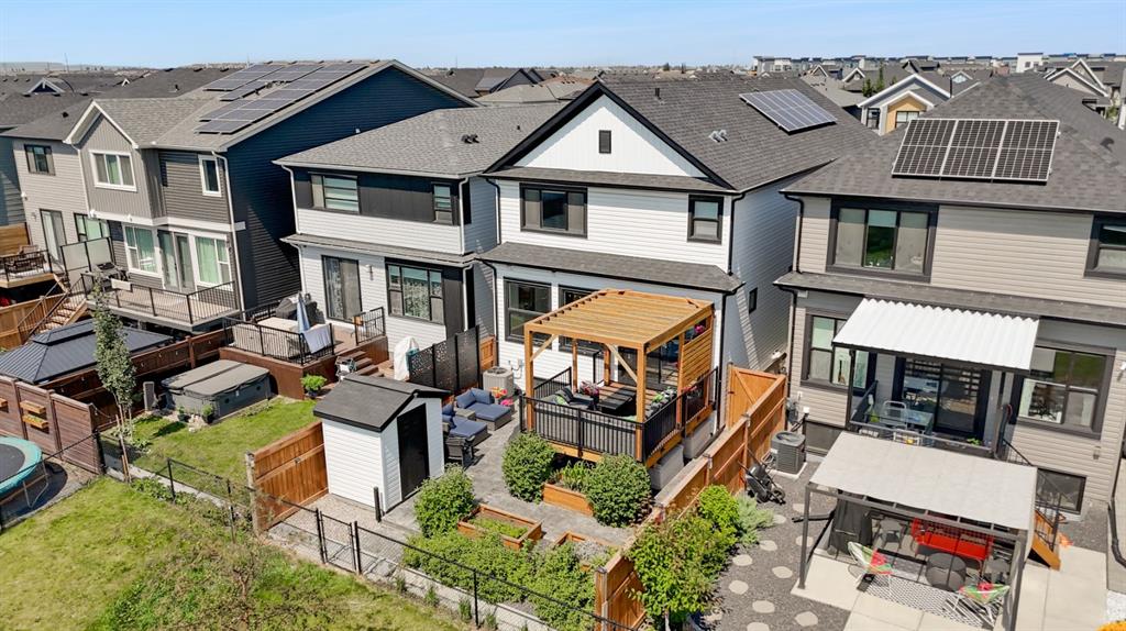 //-LUXURY LIVING MEETS ENERGY EFFICIENCY-// | 3 BED-3.5 BATH | 3,027 TOTAL SQFT | PRIVATE LOT BACKING ONTO GREEN SPACE | BUILDER UPGRADED | SOLAR PANELS | FINISHED BASEMENT | HEATED GARAGE | WELCOME to this exquisite home built by Cedarglen in the vibrant community of Seton. As you enter, the open foyer leads to a spacious area designed with 9-foot ceilings, triple-pane windows, premium wide plank engineered hardwood flooring, and an upgraded trim package. At the heart of this home is a stunning kitchen equipped with upgraded cabinetry, black stainless steel appliances—including a gas cooktop, wall oven, and microwave—quartz countertops and a large pantry. This area seamlessly flows into the spacious dining area, perfect for entertaining. The living room is expansive, featuring a beautiful wall with a fireplace and direct access to the outdoor living space, complete with a pergola and privacy shades. A convenient mudroom with built-in storage lockers and a 2-piece powder room complete the main floor. UPSTAIRS, you’ll find a vaulted second-floor bonus room with an office nook, three bedrooms, and two full, including a large primary bedroom with a 5-piece ensuite and a massive walk-in closet. The convenience of an upstairs laundry room adds to the home’s thoughtful layout. The basement is professionally developed and includes LVP flooring, a study/craft area, a recreation room with a wet bar, a full-size fridge, built-in millwork and storage, quartz countertops and in-ceiling SONOS speakers for the TV area. The basement also features increased ceiling height in the main area, with a larger window and a 4-piece bathroom. OUTSIDE, the low-maintenance backyard features stamped concrete, gas line for BBQ, an aluminum privacy screen, and overlooks a serene green space, making this one of the best lots in the community. A 12 panel 5.4 kW solar panel system adds to the already excellent energy efficiency. Additional amenities include on-demand hot water, Kinetico water softener, central air conditioning and an extended, electric heated garage that can be converted to a car charger station. All within walking distance to the amenities of Seton, including grocery stores, a movie theatre, restaurants, and just a 5-minute walk to the extensive future HOA facility and community amenities currently under construction. Enjoy the world’s largest YMCA in the community as well. Book your showing today!