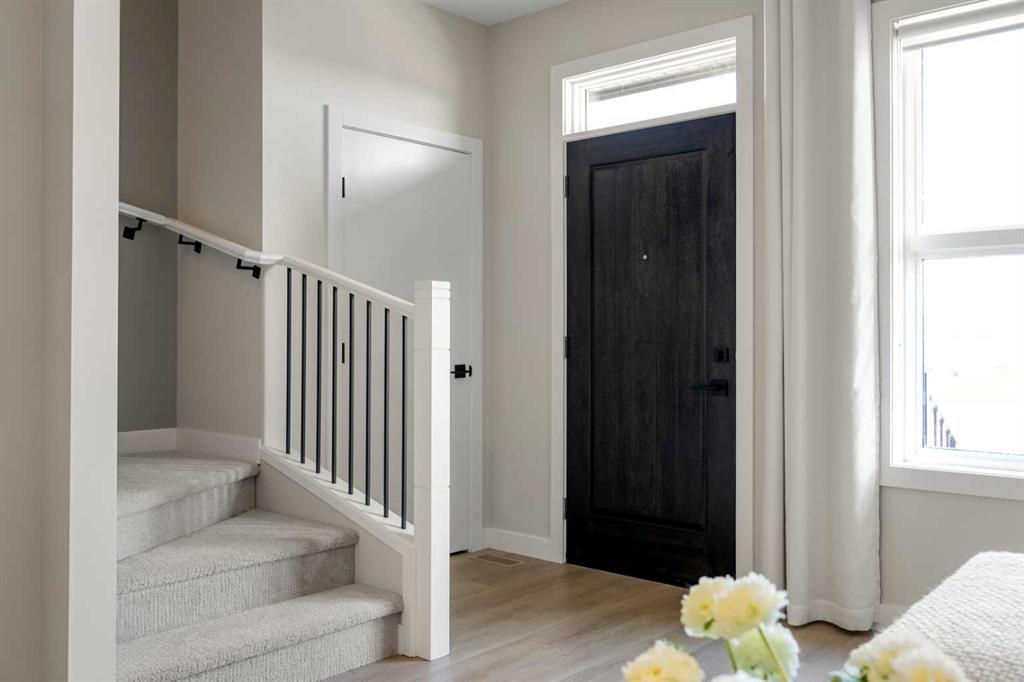 Introducing the Ashton 18' by Partners—your opportunity to own a brand new home without the wait! Step inside to discover an inviting, open-concept main floor featuring 9' ceilings, a bright living area, a versatile dining space, and a kitchen equipped with quartz countertops, full-height cabinets with a bank of pot drawers, and stainless steel Whirlpool appliances, including a range, fridge, OTR microwave/hood fan, and dishwasher. The main floor also includes a bedroom and a full bathroom, ideal for guests or multi-generational living. A convenient side entry adds flexibility and potential for future use. Upstairs, the primary suite features two closets and a 4-piece ensuite with double vanities. Two additional bedrooms, a full bathroom, and a dedicated laundry space (with washer and dryer included) provide plenty of room for the entire family. Additional features include 9' basement ceilings, luxury vinyl plank and luxury vinyl tile flooring, front landscaping, and a rear lane gravel parking pad. Book your private tour today and see all this home has to offer!