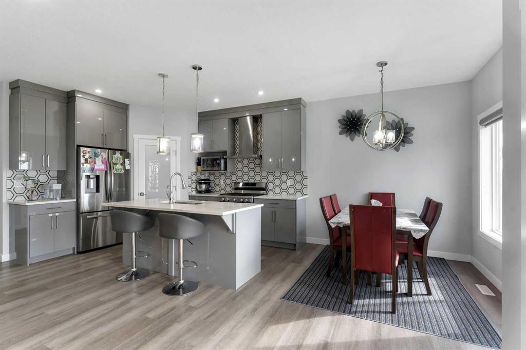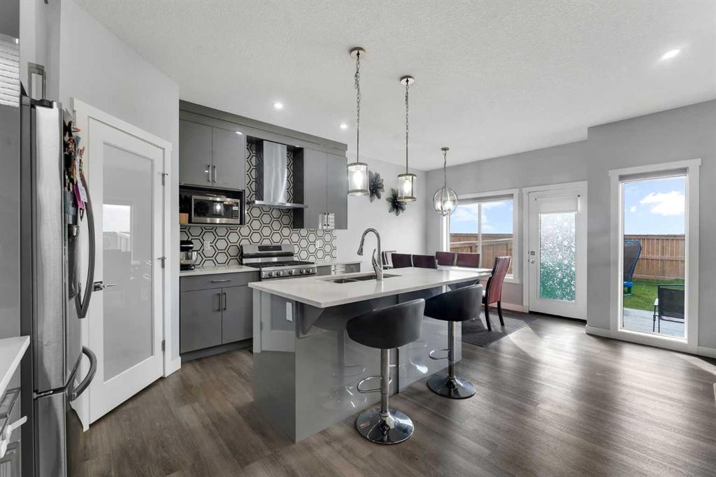 4 BEDROOMS + DEN | 3 FULL BATHROOMS | ILLEGAL BASEMENT SUITE | BACKING ONTO FIELDS/NO NEIGHBOURS BEHIND | Welcome to your Dream Home in the vibrant community of Cornerstone, Calgary. This exquisite abode offers an unparalleled blend of elegance and functionality. As the proud first owners, meticulous care and thoughtful upgrades have transformed this 3 bedroom residence into a haven of luxury.The main floor showcases sleek LVP flooring, stone countertops, and an open-concept layout. The breakfast bar with seating for two opens to a spacious dining area, perfect for entertaining and family gatherings, leading to a private deck. The bright living room, enhanced by natural light, creates a warm and inviting atmosphere. Upstairs, the home offers three generously sized bedrooms. The primary suite with a tray ceiling boasts a luxurious 5-piece bath, a spacious walk-in closet and a separate toilet room with light and fan. A bonus room provides an ideal space for a play area or movie nights. Completing the upper floor are a convenient laundry room and a 4-piece bath, ensuring all essentials are within easy reach. The fully finished illegal basement adds significant value with a bedroom and a den currently rented for $1150 month plus 40% utilities, providing flexibility for additional income or extended family living. The backyard, featuring a deck and fence, opens to green space, ensuring privacy with no neighbors at the back. This home is perfect for growing families seeking space and comfort. A home like this won't last long! Call your favorite realtor today.