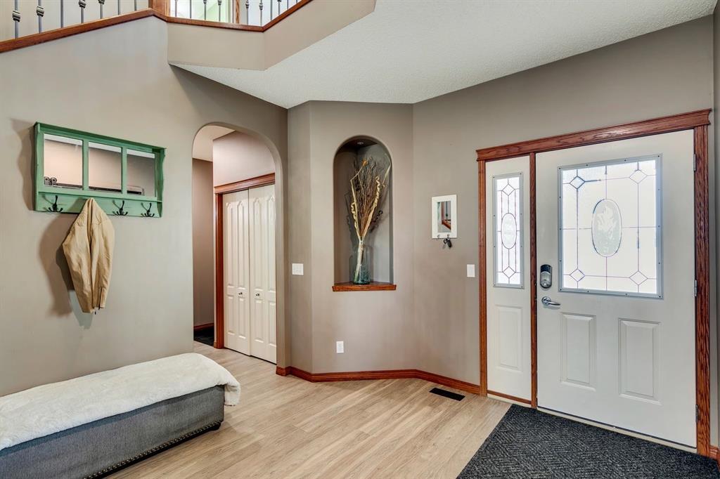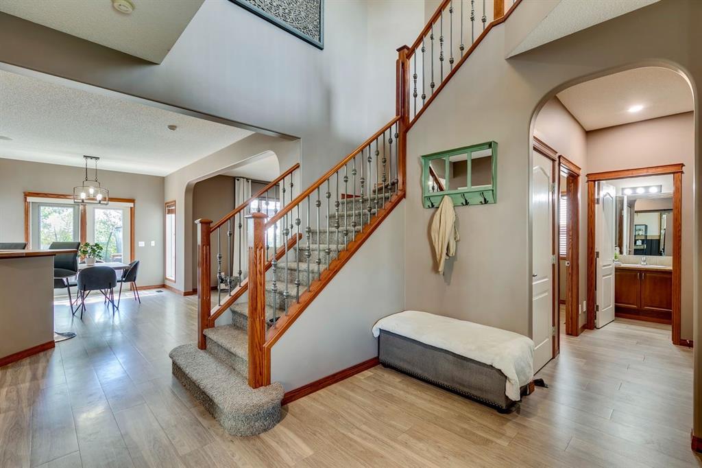 Welcome to this inviting two-story home located in the beautiful community of Westmere in Chestermere. As you enter, you are greeted by stylish vinyl flooring and an abundance of natural light that creates a warm and welcoming atmosphere. The main level features an open-concept design, perfect for modern living and entertaining. The contemporary kitchen is equipped with stainless steel appliances, including a gas stove, a spacious centre island, and a large corner pantry. This large kitchen seamlessly flows into the dining room, bathed in sunshine and with direct access to your private backyard—ideal for outdoor gatherings. The cozy living area, complete with a fireplace, provides a perfect setting for relaxation and open entertaining. This level also includes a dedicated office space, a convenient laundry room, and a 2-piece bathroom. As you make your way upstairs, you will discover a large bonus room that is perfect for family movie nights or playtime, and includes a large screen and projector. The upper level boasts three generously sized bedrooms, including the primary suite, which features a luxurious ensuite with a double vanity, a walk-in closet, separate shower, private toilet and even a soothing soaking tub. An additional 4-piece bathroom is also located on this level for added convenience. The basement is currently only partially finished, offering a built in bathroom, framing and electrical and is otherwise a blank canvas for your imagination—create the ultimate entertainment space, a home gym, or additional bedrooms to suit your needs. The yard is exceptionally large and with no neighbours behind, extra private. If you have recreational toys, additional cars or would appreciate extra parking, there is even additional parking at the rear. Other noteworthy features include dual furnaces, new roof, ceiling fans in each bedroom and wired throughout with speakers. Located in a vibrant community, this home is just a short distance from shopping, schools, parks, and more, making it an ideal choice for families and individuals alike. Don’t miss the opportunity to make this charming home in Westmere your own.