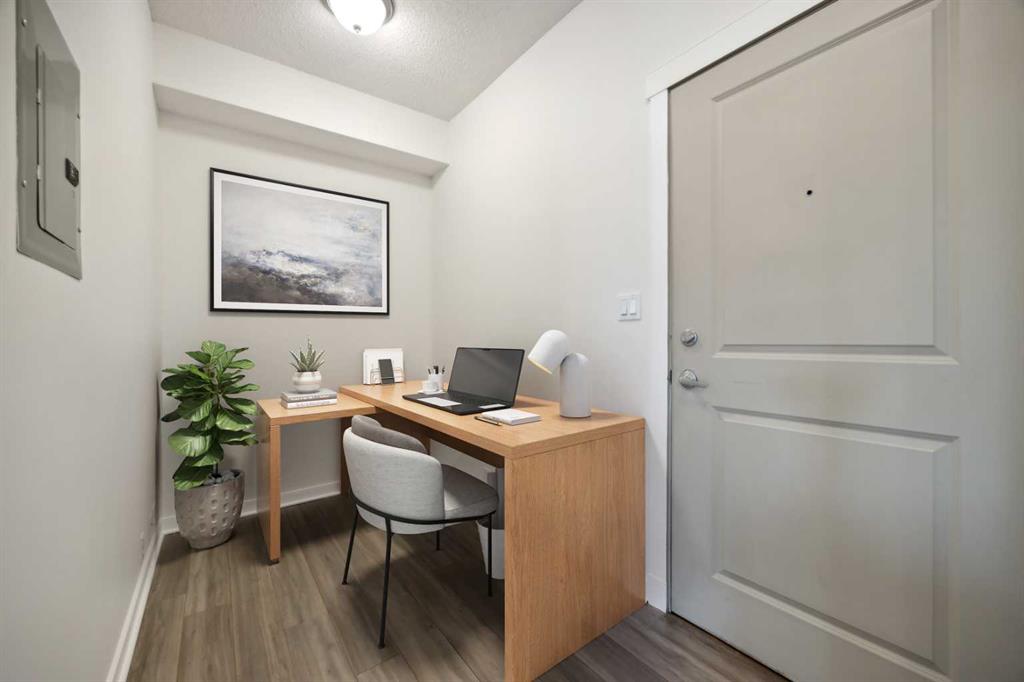 Welcome to Gateway Garrison Green, a beautifully designed, QUIET, CONCRETE-BUILT condominium within walking distance to Mount Royal University, lush parks, and convenient coffee shops and restaurants — whether you're a professional, student, retiree, or investor, this home offers something special for everyone! As you step inside, you'll immediately notice the high ceilings, durable vinyl plank flooring, freshly painted neutral walls, and a bright, inviting, open-concept layout. The spacious ONE-BEDROOM + DEN floor plan is perfect for working or studying from home, and the large kitchen and dining area make it easy to host family and friends on weekends. The modern kitchen has stylish details including GRANITE countertops, quality cabinetry, and STAINLESS-STEEL appliances. Step outside to a PRIVATE BALCONY surrounded by mature trees, which includes a natural gas hook-up for your BBQ – a wonderful space to enjoy your peaceful morning coffee or evening wind-down! The amenities in this building are outstanding—take advantage of the fitness centre, library area, two guest suites for visitors, a party room, bike storage, and a beautifully LANDSCAPED COURTYARD. This unit comes with IN-SUITE LAUNDRY, a TITLED UNDERGROUND PARKING stall and a separate STORAGE LOCKER. The building is well-maintained and secure, with a full-time on-site manager who ensures your safety and provides support when needed. The condo fees include HEAT, WATER, and ELECTRICITY, making this a worry-free living experience! Located in Calgary's sought-after SW community of Garrison Green, you're just a short drive from Marda Loop, Downtown Calgary, and Rockyview General Hospital, with easy access to Glenmore and Crowchild Trail, top schools, fantastic shopping and golf courses. This well-maintained, move-in-ready home is waiting for its new owners. Call now to book a private showing!
