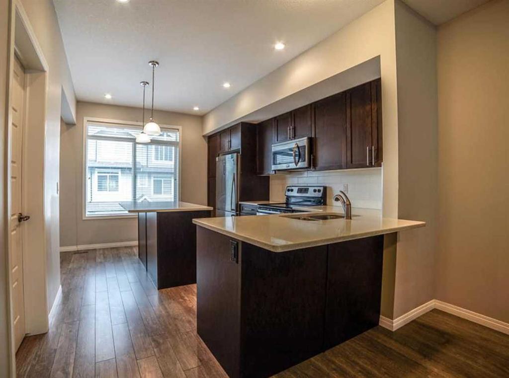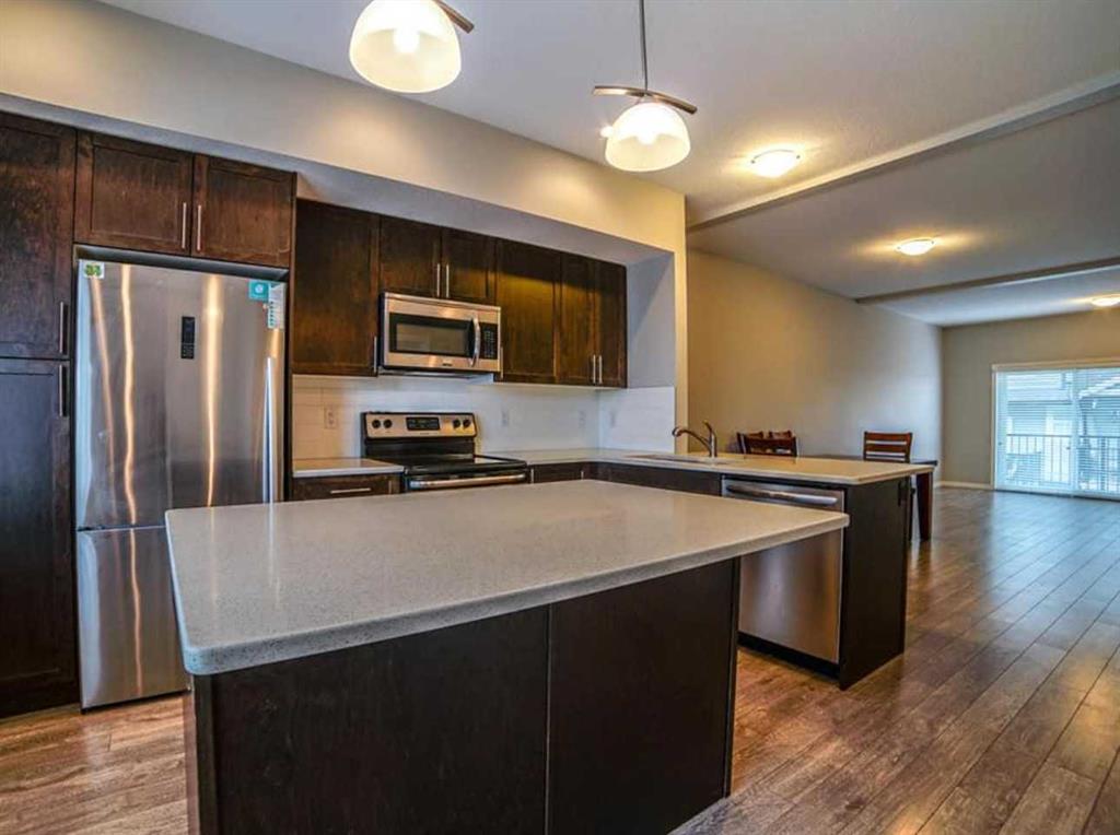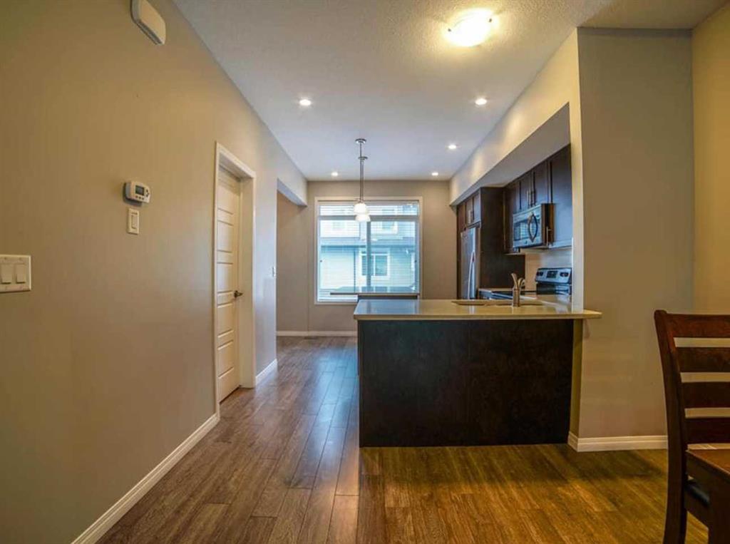 Experience the perfect blend of style and functionality in this beautifully designed townhome, thoughtfully crafted for effortless entertaining and family gatherings. Offering 3 bedrooms, 2.5 baths, and an expansive tandem garage, this residence leaves nothing to be desired. The open-concept main floor is bathed in natural light, enhanced by soaring 9-foot ceilings and vinyl flooring that extends from the dining area through to the inviting living room with a modern electric fireplace. The heart of the home is the well-appointed kitchen, featuring a center island, quartz countertops, subway tile backsplash, stainless steel appliances, an under-mount sink, and ample cabinetry for all your storage needs. The spacious dining room is perfect for hosting memorable meals with family and friends. Step outside to the sun-soaked balcony, complete with a natural gas BBQ hookup for seamless outdoor cooking and relaxation. Upstairs, the Master Suite features a generous walk-in closet and a spa-like ensuite, complete with dual vanities and a luxurious glass-enclosed shower. Two other generously sized bedrooms has its own adjacent 4-piece bathroom, perfect for family, guests, or a home office. Convenient upstairs laundry room completes the top floor! With two entrances, including one through the front courtyard and another via the rear garage, you'll find both convenience and privacy in this well-planned layout. The tandem garage provides room for two vehicles, plus an additional space on the driveway. Situated in an ideal location within walking distance of schools, parks, and scenic pathways, this home truly offers it all. Schedule your private tour today!