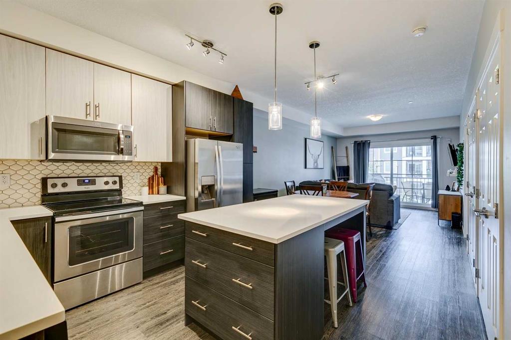 Welcome to this upgraded and meticulously maintained condo in the desirable community of Legacy. This stunning home greets you with a spacious entryway that leads to a warm and inviting living space. The expansive kitchen is truly a chef’s dream, featuring luxurious quartz countertops and a deluxe island that provides both prep space and casual seating. The hexagon tile backsplash adds a modern, stylish touch, while the extended-height pantry with roll-out drawers ensures optimal storage and convenience. You'll love the upgraded stainless steel appliances, including a fridge with a built-in water dispenser, plus an additional bank of extended-height upper cabinets for all your storage needs. Both bedrooms are generously sized and feature ample closet space. The primary suite offers custom closet organizers in the walk-through closet, leading into your own private ensuite. Both bathrooms provide tub/shower combos and have been upgraded to include drawer storage in the vanities and additional elegant tile. You’ll love doing laundry with the upgraded full-size washer and dryer, conveniently located in a dedicated laundry space that includes additional storage. Your private west-facing balcony is the perfect spot to unwind. Equipped with a gas line for your BBQ, it's ideal for hosting gatherings or enjoying a quiet evening soaking in the sunset. Additional features include underground secure parking, a separate storage unit, and a titled parking stall, ensuring you have all the space you need to live comfortably. Located just a stone's throw away from shopping, walking paths, and parks, this home offers endless amenities for you to enjoy. With easy access to McLeod, Deerfoot, and Stoney Trail, you can relish city life while having a peaceful oasis to retreat to. Don't miss the opportunity to live your best life in Legacy! Schedule a viewing today and make this stunning home yours!