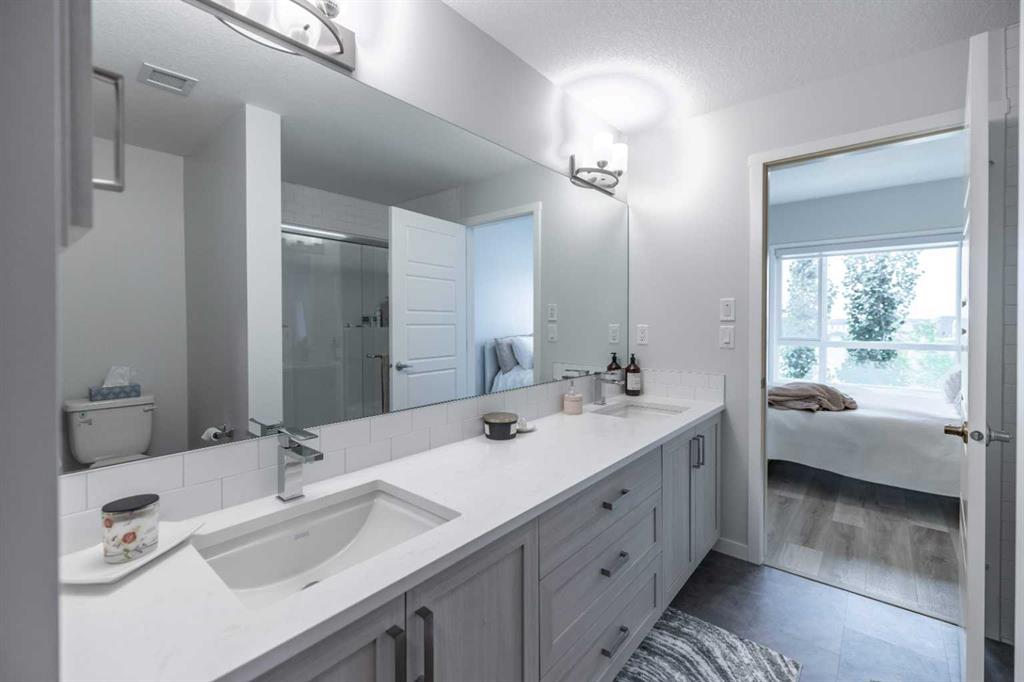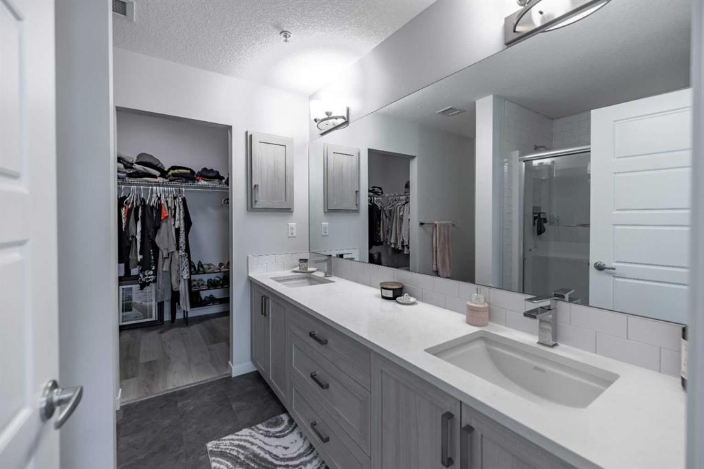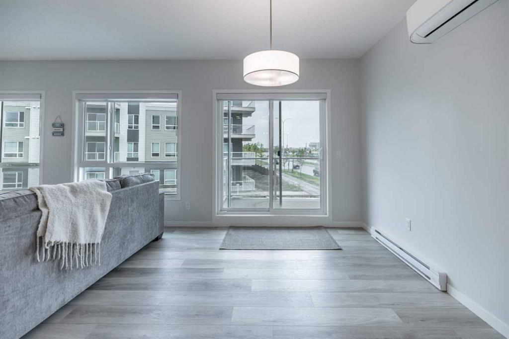 Welcome to Seton Summit, a highly sought-after development in Calgary. Built by Cedarglen Living, a well-respected builder who has been awarded the "Builder of Choice" title. This must see 1,056.12 RMS square feet (1,112 sq. ft builder's measurements) second floor corner unit with a stunning wrap around balcony. The suite features 2 bedrooms each with their own walk-in closets,2 bathrooms, quartz counter tops throughout and 9-foot ceilings, creating an airy and spacious atmosphere. Throughout the unit, you'll find high-quality LVP (Luxury Vinyl Plank)and LVT (Luxury Vinyl Tile) flooring, which not only adds style but also ensures durability and easy maintenance. It is also equipped with in suite laundry, an air conditioning system, a gas line that leads to the balcony, storage space and a titled underground parking space. The open concept kitchen features full-height cabinets, and stainless-steel Samsung appliances that complement the modern aesthetic. The island has multiple uses that range from offering ample space for meal preparation to becoming a seamless transition into the spacious living area and large dining room. A perfect addition for entertaining guests and that includes a recycling center. You'll find an abundance of shopping options, dining establishments, cinemas, and other leisure facilities such as the Seton HOA are in close proximity. HWY 2 & transit options are near by making it an easy commute to work or explore the surrounding areas. One of the standout attractions near this development is the largest YMCA in the world and South Hospital, providing easy access to quality services. Don't miss out on this amazing opportunity to live in a suite that offers both comfort and convenience.
