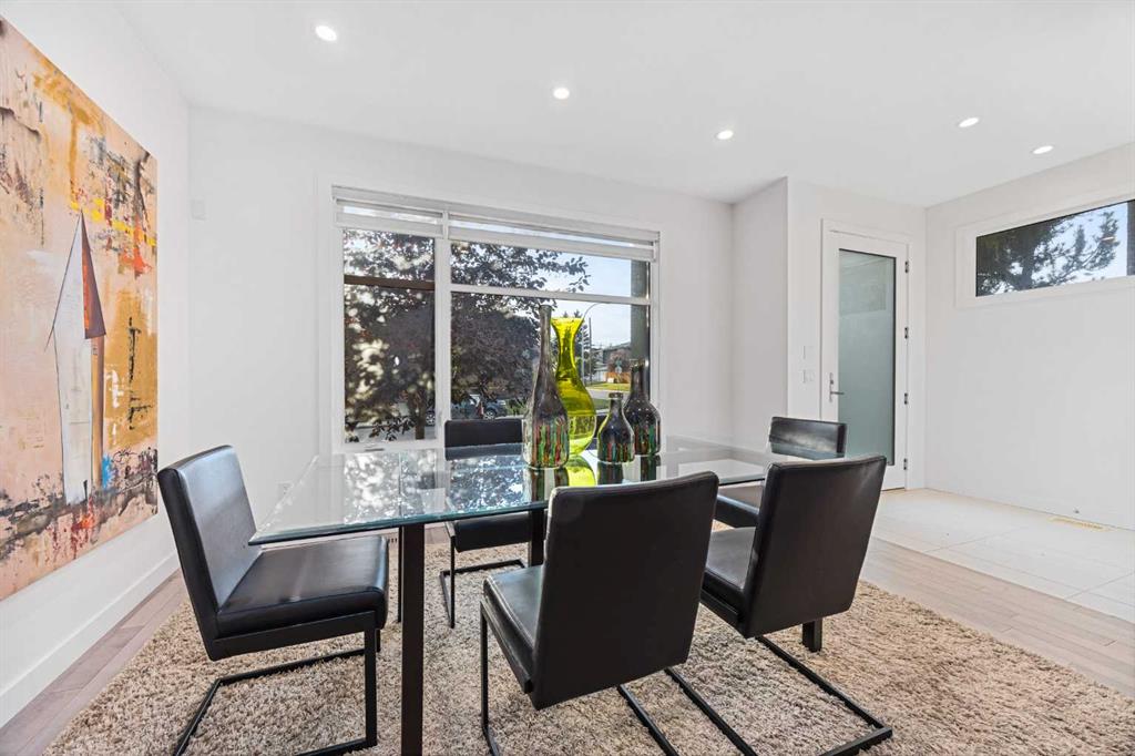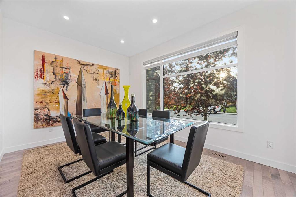 Discover the perfect blend of style and comfort in this beautifully crafted home. Designed for modern living, the main floor is an entertainer's dream, showcasing an open-concept layout with impressive 9-foot ceilings. The front foyer opens to a large dining room with oversized windows. Chef’s kitchen features abundant storage, custom cabinets, a large walk-in pantry, and high-end Bosch appliances. Quartz countertops and two-tone cabinetry add an elegant touch. The living room is spacious with a linear fireplace clad in stone and surrounded by built-in storage. Patio doors lead to a secluded East facing backyard with a deck and gas-burning fireplace. A discreet half bath and mudroom provide functional convenience. An open riser staircase with glass wall leads to the upper floor. Primary bedroom features soaring vaulted ceilings, a spacious walk-in closet with custom built-ins, and large windows that flood the space with natural light. The 5-piece ensuite is a luxurious space with a free-standing soaker tub, dual sinks, heated floor and a steam shower with rain feature. The walk-in closet has plenty of custom cabinetry. Ideal for families, the two secondary bedrooms offer plenty of space for kids, complemented by a stylish 4-piece bathroom . Enjoy the convenience of the dedicated laundry room, equipped with a sink and storage cabinets, also situated upstairs. The fully finished basement boasts a spacious fourth bedroom with a walk-in closet, a family/media room with a wet bar and wine fridge, and a stylish 3-piece bathroom. This home is complete with central air conditioning and is wired for sound. Striking rooflines and beautiful rock accents on the exterior add to the modern feel. Close to parks, playgrounds, and schools, this lovely home is within walking distance to the C train, transit, and an easy commute to the downtown, Mount Royal University and Rockyview Hospital.