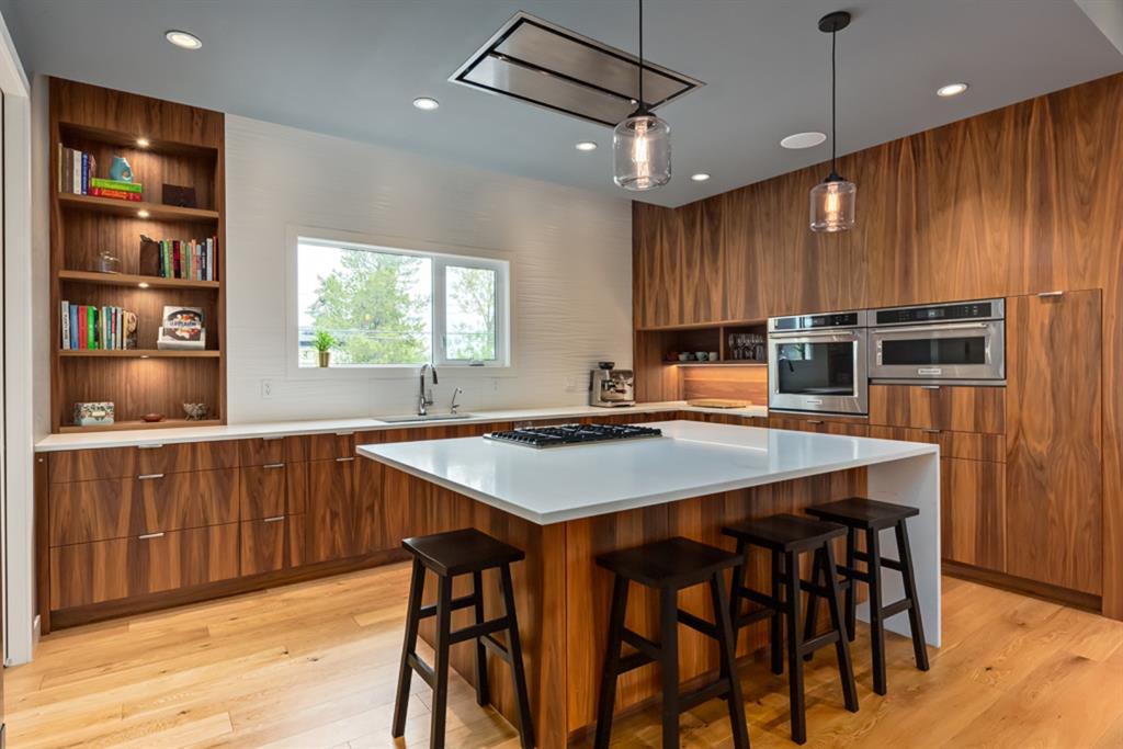 Public Remarks This modern masterpiece is thoughtfully designed to integrate indoor and outdoor living on every level. It features a unique two-bedroom illegal suite with a private entrance and patio area. This versatile suite offers opportunities for generating rental income or providing independent living for family members. Situated on a corner lot, this open-concept home is filled with natural light thanks to abundant windows. It features a main-floor den and a spacious great room with patio doors opening to a covered outdoor space on two sides, seamlessly extending into the sun-soaked west-facing yard. The European-inspired kitchen is a chef's dream, featuring walnut cabinetry, high-end appliances, and a gas cooktop on the island. Other standout features include a custom walnut mudroom, a stylish powder room, and a spacious living room with an elongated gas fireplace, all set beneath striking 10-foot ceilings. Ascending to the upper floor unveils three bedrooms and a convenient laundry area. The primary bedroom offers captivating downtown vistas and delivers a spacious custom walk-in closet with a skylight: the stylish ensuite features dual sinks and a custom shower. An intimate rooftop patio with a western exposure provides an adaptable outdoor retreat. The lower-level illegal suite features a generous great room with upscale appliances, a sizable island for casual dining, and separate laundry facilities. It is all under lofty 9-foot ceilings with expansive windows, creating a welcoming ambiance. Outside, the landscaping blends mature and newly planted trees and shrubs, enhancing its aesthetic appeal. An insulated and dry-walled oversized triple garage accommodates two vehicles, with the third bay converted into a private studio for immersive "jam sessions" without disturbing the neighbourhood. It's only moments from schools and parks, with the vibrant shops, cafes, and restaurants of Marda Loop easily accessible. Community events further enhance the lively atmosphere of the neighbourhood. With its exceptional design and amenities, this property is a unique offering.