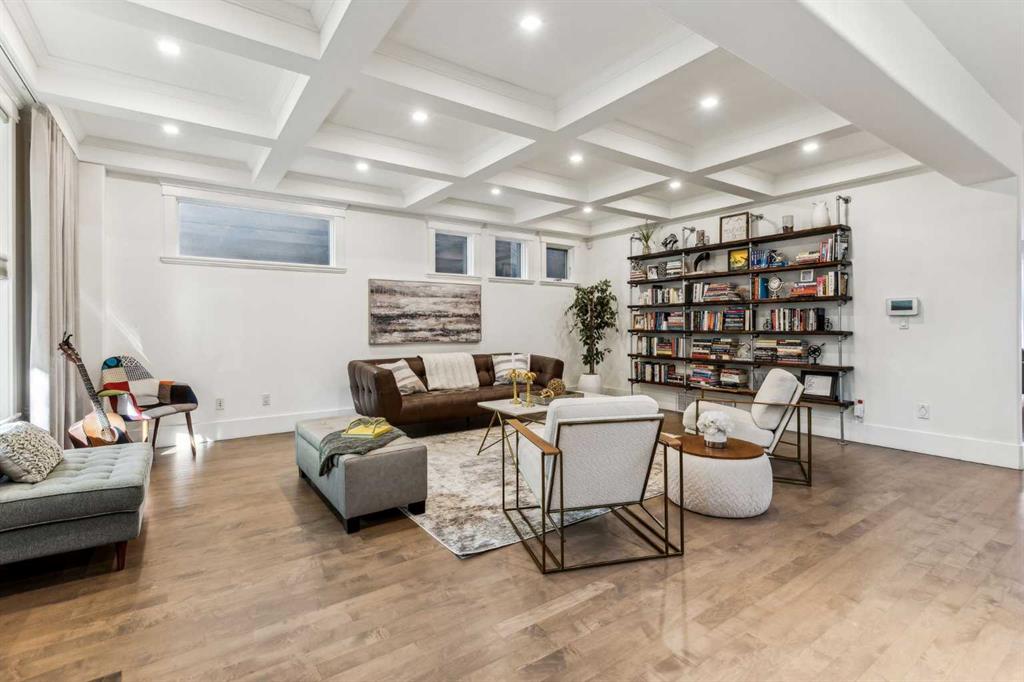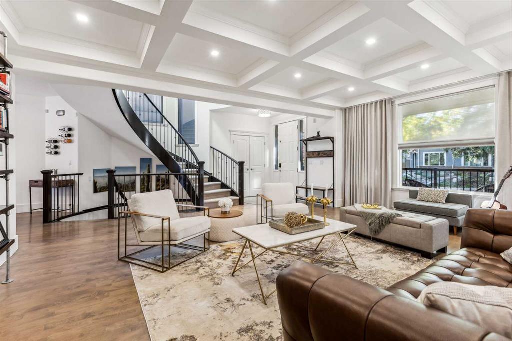 Luxurious inner-city dream home just 2 doors down from a park and playground in the highly desirable community of Altadore. This charming tree-lined street is within walking distance to schools, the Sandy Beach Off-leash Park, The Elbow River and the multitude of amenities throughout trendy Marda Loop. After all that adventure come home to a quiet sanctuary. The sunny south-facing front porch entices peaceful morning coffees with mature tree views as the serene backdrop. Inside this elegant and contemporary home are copious amounts of high-end upgrades including site-refinished hardwood floors, tankless hot water, central air conditioning, increased attic insulation and much more. Grand 9’ coffered ceilings add to the glamourous atmosphere in the large and welcoming living room with an oversized picture window streaming in natural light. The custom gourmet kitchen inspires culinary adventures featuring quartz countertops and high-end appliances including a Sub-Zero refrigerator, Viking Professional 6 burner gas cooktop, Wolf oven, and Miele dishwasher. The large custom island has storage on both sides and ample space for everyone to gather around. Entertain with ease in the adjacent dining room with gorgeous designer lighting for a casually elegant ambience. Spend cooler weather with your feet up in front of the stunning fireplace with a picture frame surround made from honed Statuario marble imported from Italy. Open the French doors on warm days and let the breeze flow through. Ascend the dramatic curved staircase illuminated by extra windows and a sunny skylight to the upper level. The primary bedroom is a true owner’s retreat with soaring vaulted ceilings, oversized windows framing the treetops, dual custom walk-in closet and a swoon-worthy 5-piece ensuite. In-floor heating keeps toes toasty, dual sinks so you don’t have to share, a jetted soaker tub for a relaxing dip after a long day, a lavish steam shower and a second skylight will have you feeling spoiled daily! Both additional bedrooms on this level are spacious and bright with easy access to the 4-piece bathroom. Laundry is also conveniently on this level. Descend the second curved staircase to the finished basement and convene around the second fireplace in the large rec room with custom built-ins for media and display and in-flooring heating adding to your comfort. 2 additional bedrooms and another full bathroom ensure plenty of extra space for guests, a home office, gym or playroom. The full-width deck and patio hosts casual barbeques, summers dining al fresco and lazy weekends lounging surrounded by a beautiful, professionally finished landscaped yard. The double detached garage with newer shingles (2021) and insulation leads to a paved back lane. Phenomenally located in the heart of Altadore with the best of both worlds – outdoor recreation, scenic parks and tranquillity combined with boutique shopping, award-winning restaurants and prestigious schools all within walking distance!