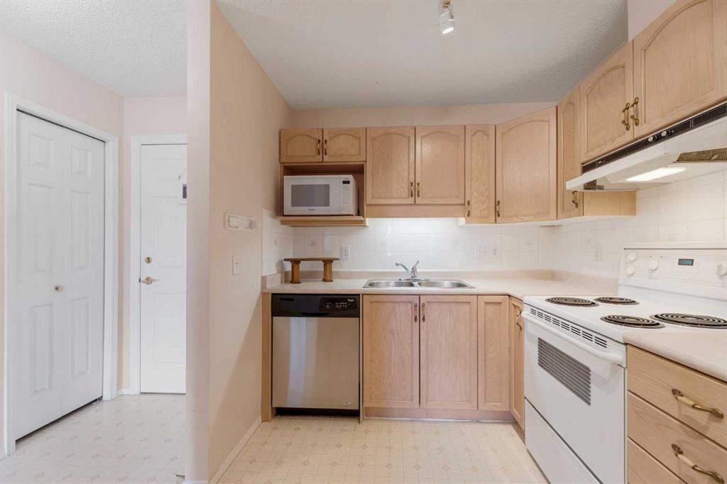 Public Remarks NEW PRICE!!! Enjoy living in this 50+ condo at the very popular Dreamview Village in Hawkwood, Set on a multi acre property including private boardwalk and walking paths, circling a large lagoon, complete with a beautiful spray fountain. This 1 bed + den condo features large windows, bringing in plenty of natural light. At over 730 sqft with absolutely no carpets, this is ideal space for the retiree looking to down size. The living room is spacious and has a dining space just next to the kitchen. The bedroom has a wall of closets and enough space for all of your existing furniture. Next to the bedroom is the den - perfect space to realize your hobby. A large four-piece bathroom has a closet WITH in suite stackable laundry and a vacuflo system. Extra storage locker is assigned for any of the extras you don't use everyday. When you have company coming over, building 2000 includes a guest suite which may be booked. Also within the same building is the large woodworking shop & carwash. Just next to the community hub you'll find the community hub, the property highlight that everyone gets to enjoy. This large centre typically has physical activities like yoga, Canasta and card nights, holiday dinners, gatherings, and also includes ample sitting areas, games areas including pool tables, party areas with a large complimentary commercial kitchen, and a great lounge deck, all overlooking the lagoon. A library rounds out the amenities for those winter days and nights. Call now to book your personal viewing.
