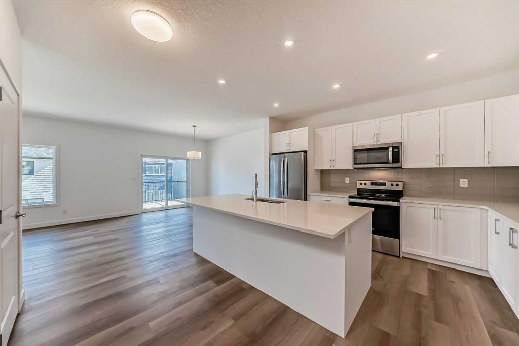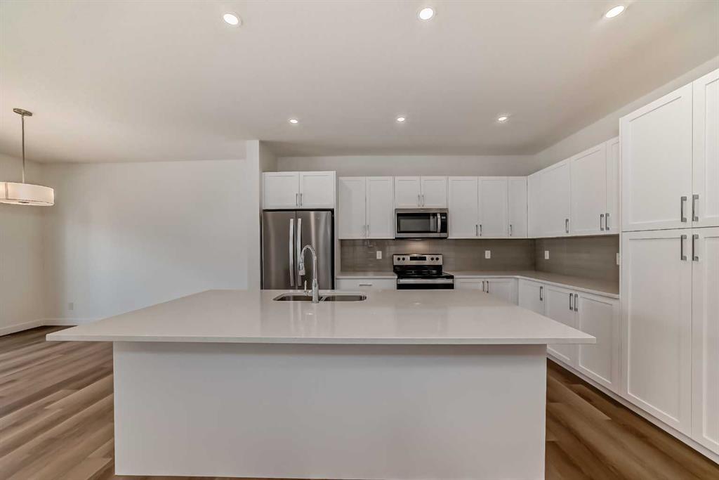 Welcome to this brand-new, move-in-ready home in the highly sought-after Wildflower community of Airdrie. With just under 2,000 sq ft of thoughtfully designed living space, this single-family detached home offers modern living at its finest. Step inside to discover a spacious kitchen with stainless steel appliances, air conditioning, and an open-concept layout, perfect for both relaxation and entertaining. The home features a walkout basement with 9 ft ceilings, providing additional space for future development or storage. The main living area opens onto a beautiful deck, ideal for enjoying summer evenings. This energy-efficient home is future-ready, equipped with a solar panel conduit and rough-in for an electric vehicle charger in the double attached garage. Located in the vibrant Wildflower community, you'll have access to Airdrie's first outdoor pool, scenic walking trails, parks, and nearby schools. With easy access to Calgary and major routes, this home perfectly balances luxury and convenience for modern family living.