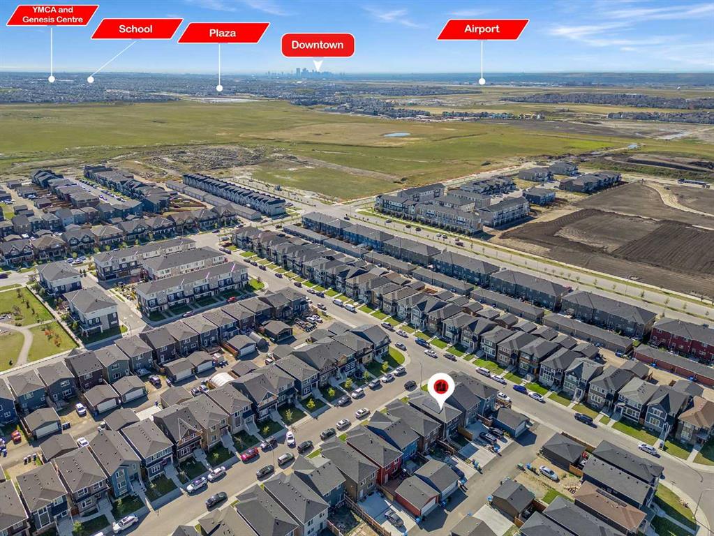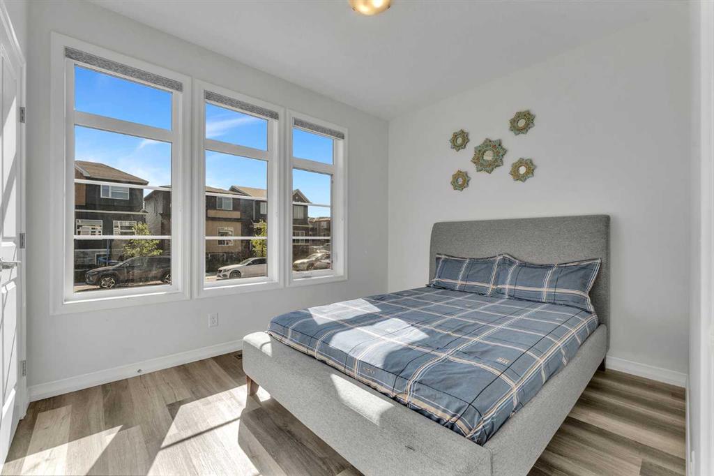MAIN FLOOR BEDROOM+ FULL BATH/AIR CONDITIONER/ Welcome to this beautiful 4 Bed 3 Bath home in the heart of Calgary's fastest growing community of Cornerstone. This house is conveniently located close to the brand new shopping plaza which includes Shoppers, Freshco, Banks and numerous other Retail stores as well as a playground and a park. Main floor features a spacious bedroom which can also be used as an Office, Full bathroom with a Standing shower, Living and Dining room in the Middle and an upgraded kitchen with quartz countertops in the back with a spacious pantry. Upstairs has the Primary bedroom with 3pc en-suite and Walk-in closet, 2 additional spacious bedrooms with a common 4pc bathroom, a very practical laundry room and nook for an office desk. This home also comes equipped with central air-conditioning to keep you cool during the hot summer days. There is a 2 car concrete parking pad in the back of the house as well as plenty street of street parking at the front. The basement is a blank canvas with a side entrance and two bright windows, ready for your creative touch.