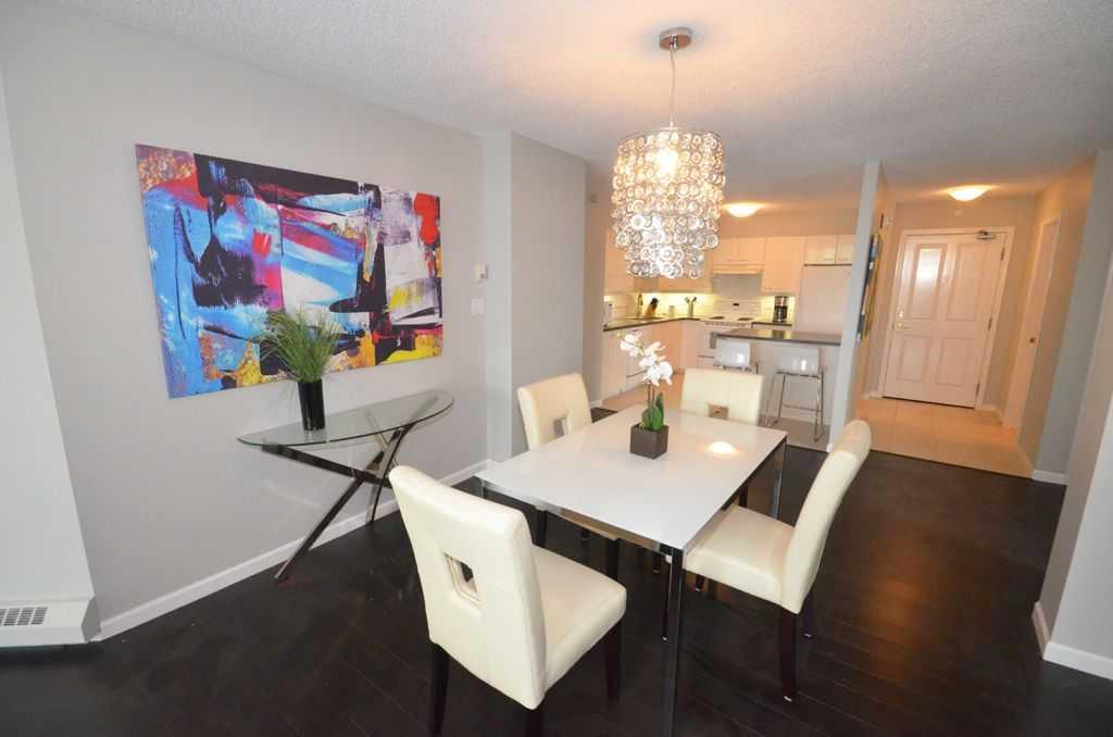 Experience urban living in this 2-bedroom plus den, 2-bathroom condo in the heart of downtown Calgary’s Liberte building. The spacious layout includes a modern kitchen overlooking the dining room and living room. This well laid out unit offers ample living space. Enjoy the warmth of the in the living room fireplace, or head outside on one of two balconies this home offers. There is a guest bathroom just off the kitchen with a full 3 pieces including, sink, toilet and shower. The den, with frosted glass walls and French doors has access to the second balcony, this room provides a cozy spot for work or relaxation. The second bedroom provides ample space for a queen bed and night stand and a large closet for added storage. The primary bedroom is large enough for a king bed, two night stands and a free standing dresser all while feeling open. The primary bedroom features two double closets and a ensuite with soaker tub shower combo and access to laundry. The building offers amenities such as an exercise area, weight room and its own tennis court. Just steps for the Calgary river pathway system, this home is ideally situated for access to local amenities. Included with this home is an underground parking stall and storage locker.