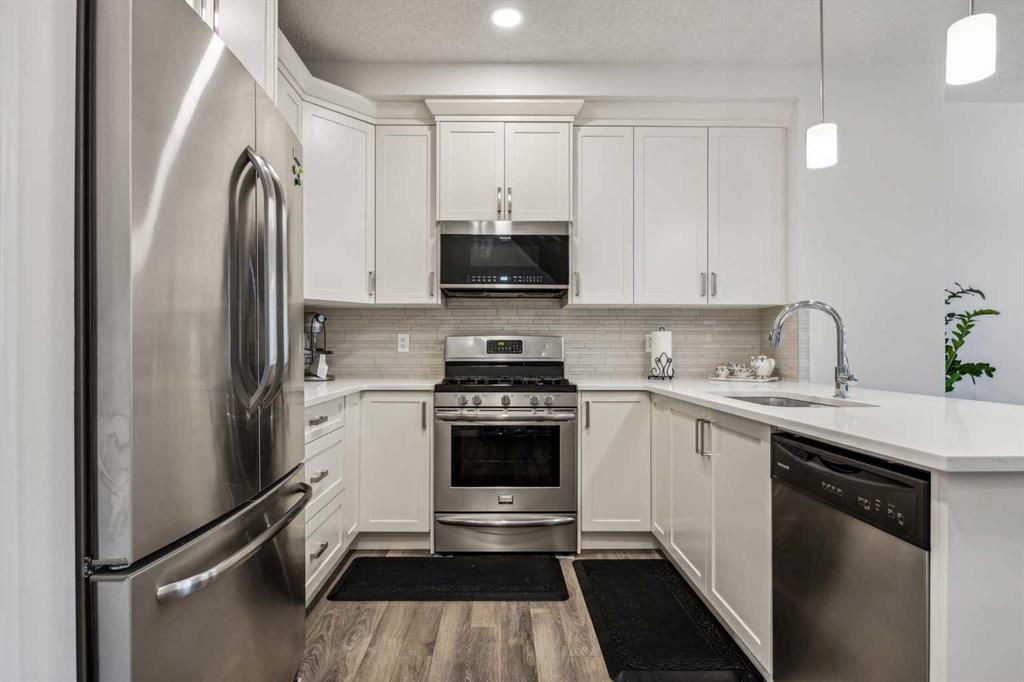 Public Remarks Welcome to this beautiful 3 plus 1 bedroom semi-detached home in the peaceful community of Carrington, offering over 1,900 square feet of fully developed living space on all 3 levels. The home includes a insulated/drywalled single attached garage with an oversized driveway providing plenty of parking. As you step inside, you’ll notice the open and airy main floor, thoughtfully designed with laminate flooring and impressive 9 feet ceilings. The spacious kitchen is perfect for anyone who enjoys cooking featuring a central island, enclosed pantry space, gas stove, stainless steel appliances, and a microwave hood fan. The gleaming white shaker cabinets with crown molding and the quartz countertops gives the kitchen modern by refined look. The living room is features a contemporary electric fireplace with a bracket and prewriring for a TV to be wall mounted above it. The living and dining areas are flooded with natural light, thanks to a large window and patio door that open up to the large expansive wooden deck with cascading stairs to the spacious backyard lawn. This outdoor space is ideal for hosting guests or simply enjoying quiet evenings, complete with meticulous landscaping with apple and cherrry fruit trees and a fully fenced yard for added privacy and comfort. A stylish half-bath on the main floor adds both convenience and practicality. Upstairs, you’ll find a tranquil master bedroom designed for relaxation. It boasts a generously sized walk-in closet and a luxurious 3-piece ensuite, complete with a standing shower and a large vanity that has space for a 2nd sink. The upper level also offers two more bedrooms, a 4-piece bathroom, and a modern laundry room. There are also custom blinds and curtain rods throughout for all of the windows throughout the house. The fully finished lower level features a 4th bedroom and 3-piece bathroom and is perfect for customizing to fit your needs, whether it be a home office (prewired with ethernet), gym area, media room with a dry bar or as additional family space. The 4th bedroom has a window and closet and a door can easily be added as well. There lower level also offers plenty of storage space in the utility room. With its proximity to the community pond and scenic walking paths, you’ll love the outdoor lifestyle this home provides. Plus, major roadways like Stoney Trail are just minutes away, making it easy to get around or head to work. There are direct bus routes to Tuscany train station and Northpointe bus terminal. New roofing and sidings are scheduled to installed in the next few months. This is a fantastic opportunity to own a stylish and functional home in a serene location, offering both quality and affordability. Don’t miss out—schedule your viewing today!