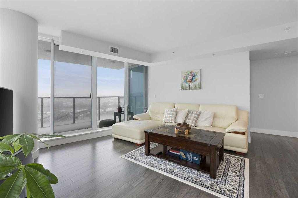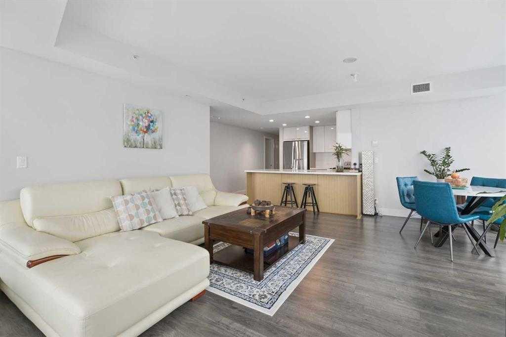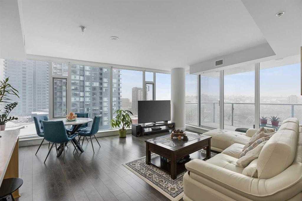 This beautiful home in the Evolution, located in the heart of trendy East Village, offers the ultimate in luxury and maintenance-free living. The Pulse building boasts fantastic views of the city, river, and mountains. This 2-bedroom, 2-bathroom unit features large floor-to-ceiling windows that fill the home with natural light. The seamless open-concept layout includes a thoughtfully appointed gourmet chef’s kitchen, highlighted by marbled granite countertops, a massive center island with a breakfast bar, high-end stainless steel appliances, a pantry, and ample cabinet space. Adjacent to the kitchen is a bright, formal dining area and a spacious living room, both flooded with sunlight and stunning views. The extraordinary primary bedroom comes with a spa-like 5-piece ensuite bathroom, featuring private showers, double vanity sinks, and closets. Additionally, there is a generous second bedroom, a gorgeous 3-piece bathroom, in-suite laundry, ample storage space, and a den perfect for a home office. The living space extends to a deck, providing a perfect spot to enjoy the views. This unit includes side-by-side parking stalls in a heated, secured underground garage, along with an assigned storage locker. Evolution offers exclusive, top-of-the-line amenities, including two fitness rooms with a steam room, a party room, and a rooftop patio perfect for entertaining. Additional features include concierge service, after-hours security, and much more. The location is unbeatable, just steps from the River Walk pathway system, the LRT station, the new state-of-the-art Central Library, and the National Music Centre. It’s also a short walk to Stampede Park and the Saddledome, dog parks, shopping, popular restaurants, bars, coffee shops, Downtown, the 17th Avenue Entertainment District, and Inglewood.