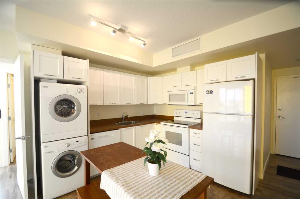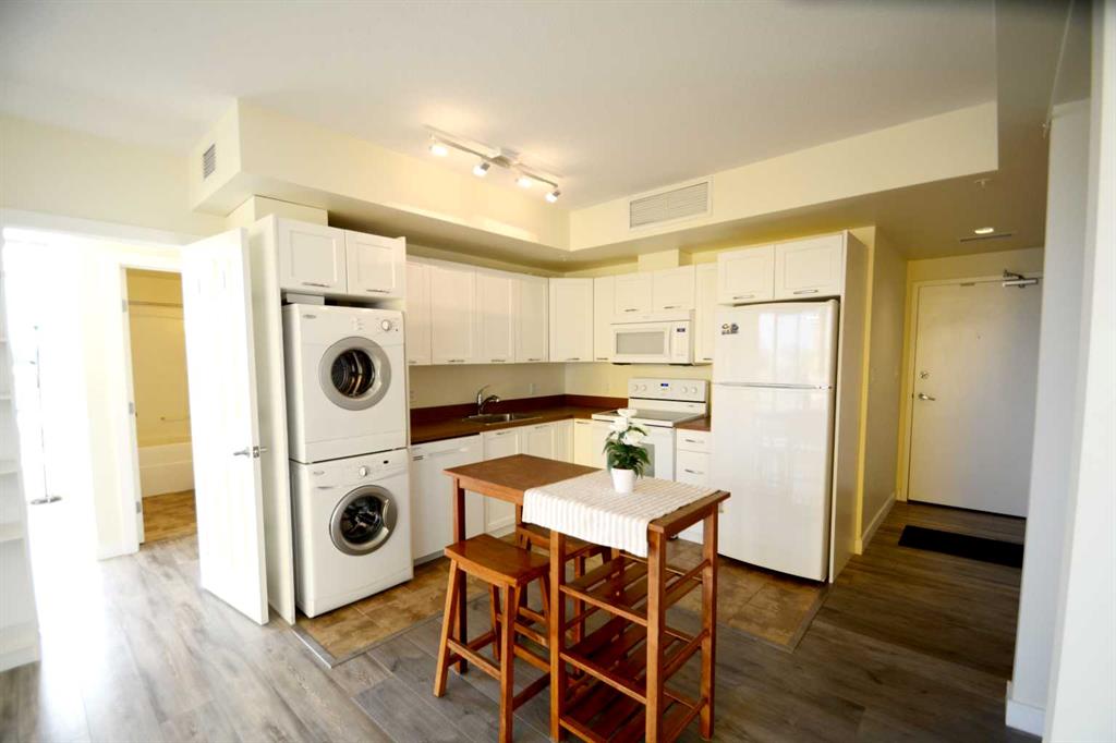 Discover an exceptional investment opportunity with this charming apartment, perfect for first-time buyers and investors seeking substantial returns. This property is poised to deliver an impressive annual gross rental yield of over $30k, making it a lucrative addition to any portfolio.This sunny corner unit is located in the convenient University City only steps away from the University of Calgary! Situated perfectly to allow lots of natural SW sun light with large oversized windows throughout the unit. This open concept floor plan boasts 9 foot ceilings,modern kitchen with white cabinets, center dining area,spacious living room,Master bedroom with its own en-suite, and second bedroom with a cheater door to the main bathroom.Also comes with a titled HEATED UNDERGROUND parking, seperate storage locker, in-suite central air conditioning,noise reduction patio door, front load stackable washer and dryer unit in the suite. This well maintained building also has a gym and a meeting room on the main floor, and also has part time security.The location is 10/10 as it it is steps away from shopping,C-Train station,restaurants,U of C,Market Mall,Bike paths, and many schools.Its only 10 minutes from downtown.Shows very well and is kept in excellent condition. Do not miss out!!!