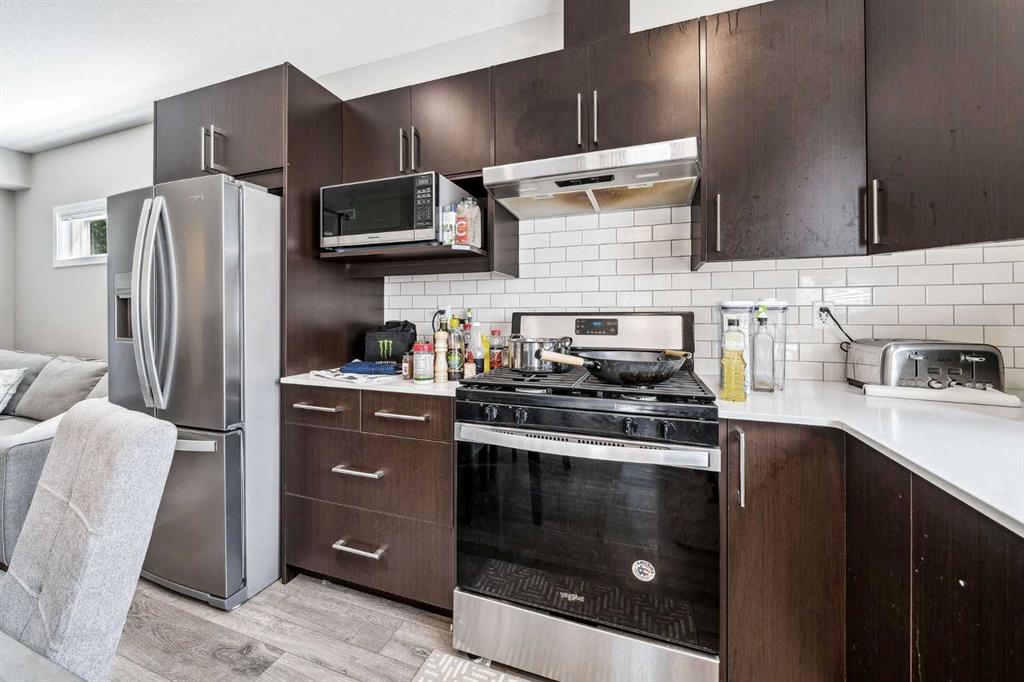 REDUCED & AVAILIBLE FOR IMEDIATE POSSESION!! INVESTORS & FIRST TIME HOME BUYERS! Here is an opportunity to own a corner unit, 1 bed 1 bath main floor townhome with low condo fees in the desirable community of Redstone. As you step into this open concept townhome you will be greeted with contemporary finishings throughout. The kitchen is fitted with thick stone counters and a stainless-steel appliance package including a gas stove. The kitchen opens onto the living and dinning area with large windows providing plenty of natural light. The primary bedroom it’s a good size with another large window and closet, and conveniently located near the full bath. as well as the laundry is conveniently located on this level. There is insuite laundry, an assigned parking stall with plug in, as well as plenty of street parking. This home is perfect for those seeking both style, comfort, and convenience. As well as an amazing location with quick access to parks, the ring road, international airport, and upcoming schools and transit…and a family friendly complex with its own playground! SELLER MAY CONSIDER A RENT TO OWN OPTION!