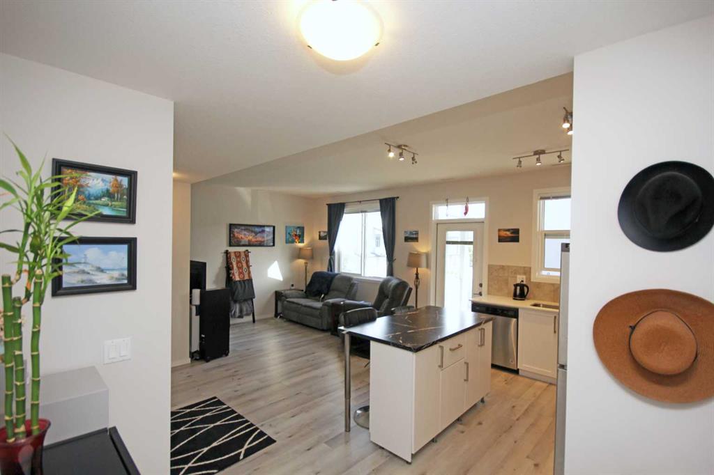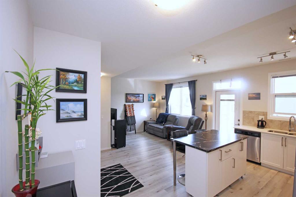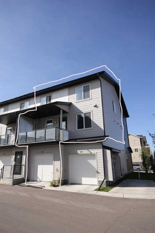 This beautiful end unit townhome offers an array of desirable features that truly make it a dream home. 0Luxury, value and top-notch features with an attached garage. Luxury vinyl plank throughout the whole level starts at the front door. The entrance leads you into a kitchen that is a chef's dream with quartz countertops, stunning cabinets, and sleek stainless-steel appliances. The addition of an island gives you both more drawers and counter space for family baking or relaxing on the dining bar stools with your friends. The dining area flows seamlessly into the spacious living area, perfect for entertaining. Step out onto the balcony and enjoy a relaxing outdoor retreat or unwind after a hectic day. The balcony features a gas-line hookup for a BBQ and a great amount of space for a dining set. Convenient 2 pc powder room located on this floor at the top of the stairs from the single attached garage. The extra height in the garage allows great storage for bikes, skis or water toys. Upstairs the good-sized master bedroom has a large window and closet, conveniently located near the full bath. as well as the laundry located on this level. 2 additional bedrooms one with a walk in closet. Granite features a 20,000 sq.ft. green space, complete with playground, BBQ area, pergola & ample green space for families to enjoy. Quick access to Stoney Trail, Metis Trail & Deerfoot Trail. Located close to the Calgary International Airport, Costco & Cross Iron Mills Mall. A great place to call home.