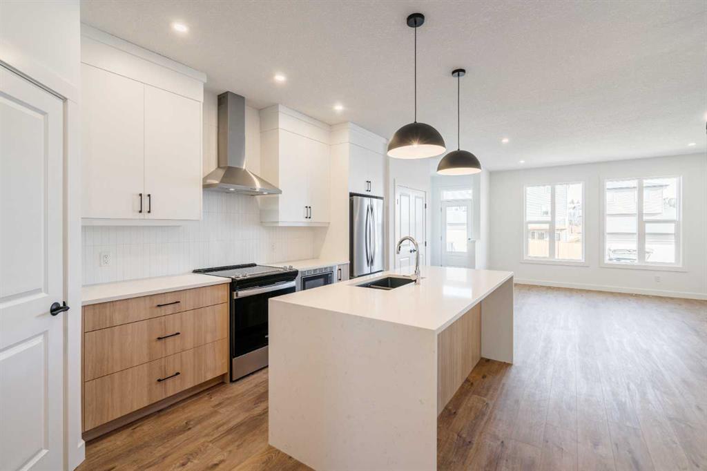 This stunning new home is perfect for a family, investor or those looking to live in a beautiful home with lower monthly costs! This property features 2 living areas, a home office / flex space, 3 bedrooms, 2.5 bathrooms and a fully legal 1 bedroom basement suite! With over 1,800 square feet of living space on two levels + legal basement suite, this property is perfect for a family or investor looking for a dual income property. Located on a pie lot across from a park and just minutes from Rockland Park's incredible HOA with a hot tub, heated lap pool, pickleball courts, hockey rink and much more - this property is one of the best in the community! The thoughtfully designed 'Carlisle 2' by Brookfield Residential offers a large front flex space which is perfect for a home office. Beyond that, the open concept main living area has a kitchen that opens to both living and dining spaces, making it the perfect spot to entertain. The kitchen is complete with timeless two tone cabinetry that goes to the ceiling, a large corner pantry, chimney hood fan and built-in microwave. The large island has waterfall quartz countertops and custom pendant lighting accents the space perfectly. The large living area has a wall of windows that overlook the backyard. Resilient vinyl plank flooring flows throughout the main level, up the stairs to the 2 pc bathroom and throughout the bonus room. The primary suite is complete with a walk-in closet and 3 pc ensuite with walk-in shower and extended vanity. Two more generous-sized bedrooms, a full bathroom and laundry room complete the second level. The professionally developed legal basement suite has its own private side-entrance and features matching finishes throughout! The suite has a large living area, dining space, bedroom, 4 pc bathroom and private laundry. The exterior of the property has already been professionally finished with a full concrete patio backyard, fencing and double concrete parking pad + additional parking stall. Central A/C is in place to keep you cool all summer long. This stunning property has been thoughtfully designed both inside and out and offers a beautiful new home with an income generating legal suite! The front office overlooks the playground/park and the private backyard is fully maintenance-free. Calgary's most desirable new community, Rockland Park, is so desired it's hard to find a lot - this is your opportunity!