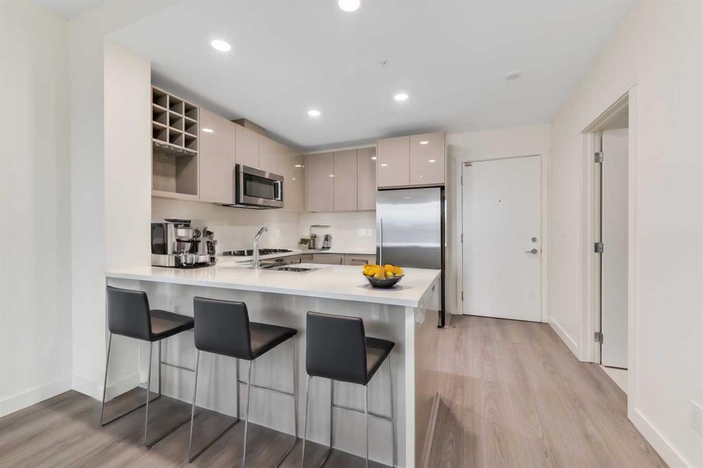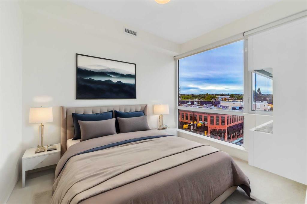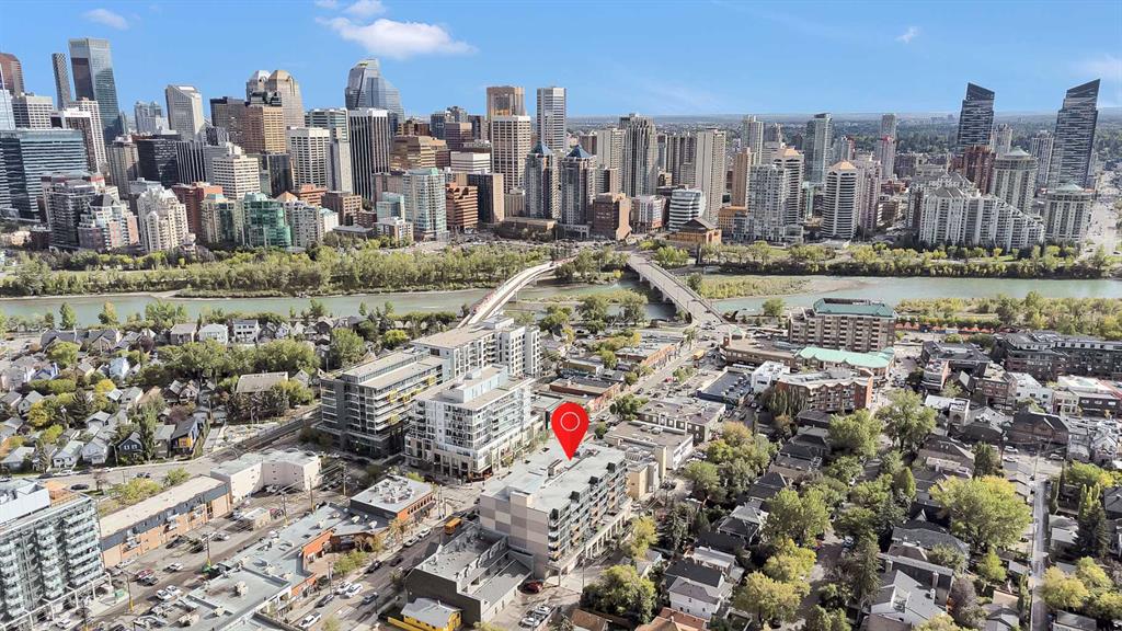 ***OPEN HOUSE SUN 17 NOV 1PM TO 3PM**** Spacious 1 bedroom condo with DOWNTOWN VIEWS in the heart of Kensington, with one underground titled parking stall, an assigned storage locker, and a CAR WASH in the parkade! The well-thought-out layout provides kitchen, dining area, living area with patio door out to the balcony, bedroom with walkthrough closet, cheater-ensuite bathroom, and a laundry/storage room. Featuring contemporary design with flat panel cabinets, QUARTZ COUNTERS, and laminate floors. The generous kitchen has stainless steel appliances, GAS COOK-TOP, under cabinet lighting, and a built-in wine rack. And there is breakfast bar seating for casual dining. The living area is generous with space for dining area and living area. Patio doors open onto the balcony which provides great views of Kensington and downtown. A bright bedroom with a wall of windows, has a modern FIREPLACE, and a walkthrough closet. This leads into the cheater ensuite bathroom with separate glass enclosed shower stall, soaker tub, and floating vanity with under-cabinet lighting. And the large laundry/ storage room is perfect for condo living. This pet-friendly condo is situated in the popular Kensington/Hillhurst area. A truly walkable neighbourhood with grocery store, restaurants, cafes, and array of stores, gyms, and entertainment on your doorstep. The Bow River pathway system is just a few minutes walk away. And access downtown on foot or by bike is a breeze. Plus, the c-train station is just 1 block away. This unit would suit anyone looking for a maintenance-free lifestyle in a safe and convenient downtown location with the best the city has to offer. Book a viewing and see why this would be a smart move for you!