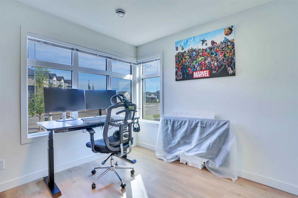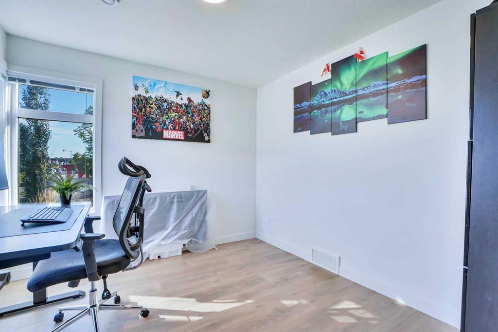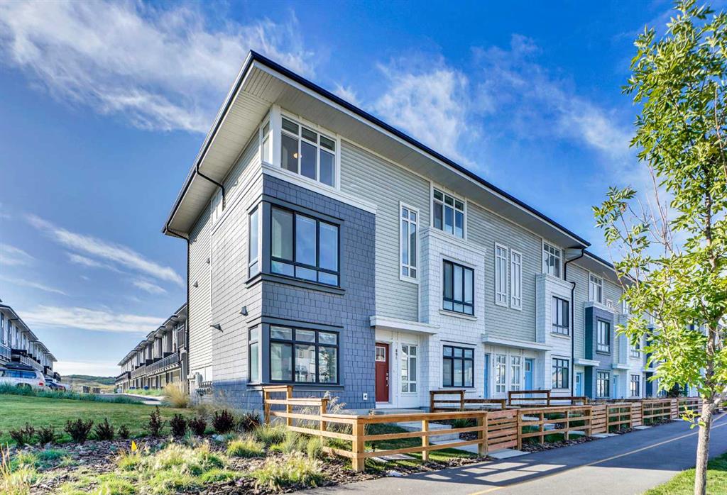 Welcome to the vibrant and master planned community of Belmont! This stunning CORNER END UNIT townhouse features 3 BEDROOMS PLUS DEN and 2.5 baths, making it one of the LARGEST TOWN HOMES in the area. Built in 2022, it beautifully combines modern design with comfortable living. The spacious open concept townhome comes complete with high end finishes, appliances. Inspired by west coast aesthetic and translated to contemporary prairie architecture, the home is bright, modern and approachable. The main floor showcases luxury vinyl plank flooring and oversized windows on three sides, flooding the space with natural light. The open-concept layout seamlessly connects the dining area and spacious living room overlooking a large kitchen equipped with quartz countertops, an electric stove, and stylish dual-tone cabinets offering ample storage. Upstairs, the primary bedroom easily fits a king-size bed and includes a walk-in closet and a private ensuite. Two additional bedrooms share a conveniently located full bathroom, and there's a stacked washer and dryer for added convenience to do the laundry. The large den on the first floor is perfect for a home office or hobby space, enhanced by large windows that bring in plenty of light. This corner unit also boasts a generous west-facing balcony, ideal for savouring your morning coffee or unwinding in the evening. With only one neighbour beside you, enjoy extra privacy. Plus, the insulated attached double garage adds even more value to this exceptional home. A private outdoor amenity space is expected to open next year. Conveniently located at the corner of 210 Ave SW and Belmont Drive SW, you’re just 2 minutes from Macleod Trail and 5 minutes from Somerset LRT station. Nearest transit bus stop is a 7 minute walk. Legacy Township, Silverado Shopping Centre, and Shawnessy are all within a 10-minute drive. Schedule your showing today and discover everything this incredible home has to offer!