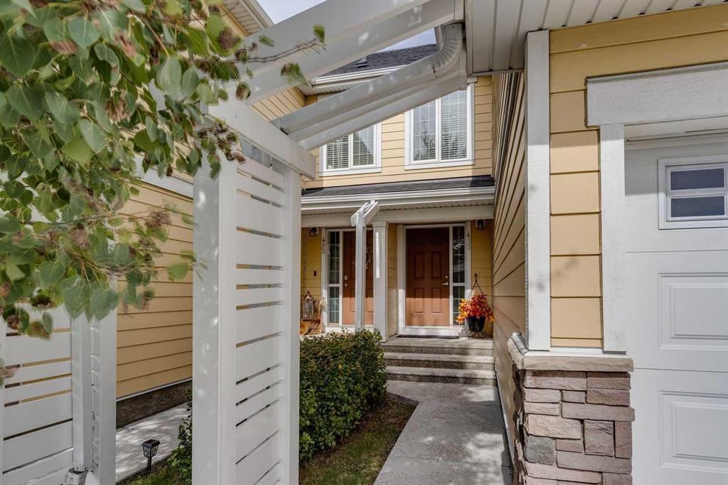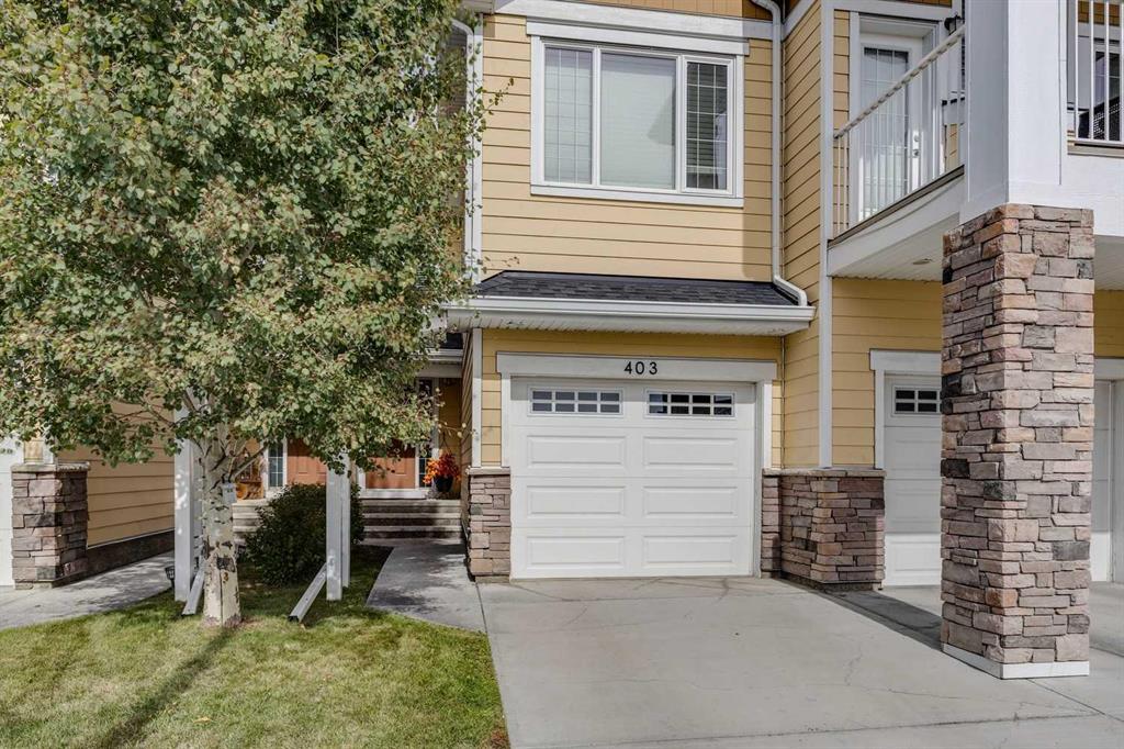 Public Remarks Welcome to Zen of Ravenswood! This desirable neighborhood is conveniently close to shopping, schools, parks, walkways and easy access to Calgary for commuters. Beautifully maintained townhome displays pride of ownership and recent upgrades including fresh paint throughout home and garage, brand new top-end appliances (stove with convection/air fry oven, refrigerator, dishwasher, microwave/hoodfan, stacked deluxe one-piece washer/dryer). Functional open plan, meticulously maintained, tastefully decorated, and move-in ready. Attractive design with covered entrance and front drive oversize single attached garage with inside access. Large foyer with laminate flooring throughout main level. Stylish kitchen features breakfast bar, granite counters and plenty of cupboard and counter space. Adjoining spacious dining area with patio door to back deck and private fenced yard. Spacious and bright living room with built-in counter/shelf. Main floor 2-piece powder room. Upper level features 2 very spacious master bedrooms with large closets (one walk-in) and 4-piece ensuites. Convenient upper level laundry and linen closet. Basement is unspoiled and ready for your development plans. Enjoy the outdoors from private back deck and yard. Just move in and enjoy!