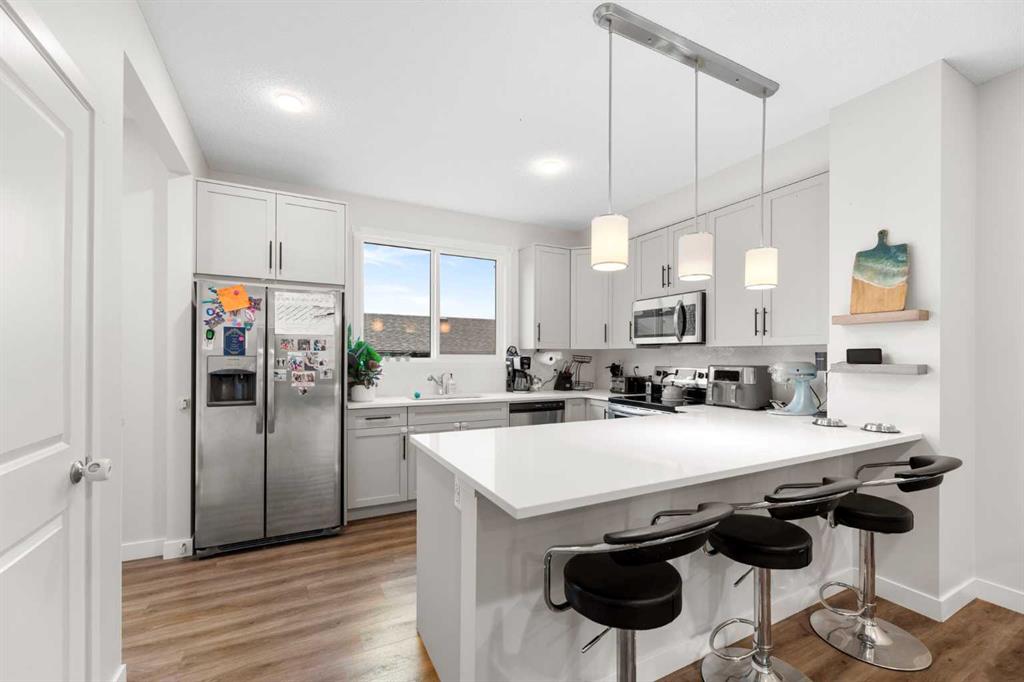 NO CONDO FEES | 4 BEDROOMS | ENSUITE | DOUBLE GARAGE | FINISHED BASEMENT | SOUTH FACING BACKYARD | As you walk into the spacious entry, you will notice the the natural sunlight that flows through the main floor. The large family room and dining area are warm and welcoming while leading to your peninsula kitchen with loads of counter space, stainless steel appliances, pantry, and large quartz island. The open concept main floor finishes with a powder and mud room tucked off the back leading towards your private deck, back yard. Moving upstairs you’ll be greeted by the large primary bedroom and spa inspired en-suite to start your day off right. Not to be left out is the full-size walk-in closet. Moving towards the 2 large secondary bedrooms, both with oversized closets, is your upstairs laundry including storage and another full 4pc bath. The fully finished basement is a rare find and exceptionally well designed and built by Homes by Avi. As you enter, the large entertainment area welcomes and leads you to the 4th bathroom rough in, 4th bedroom and healthy storage area! The landscaped backyard provides immense space and the privacy you deserve, with an appropriately sized deck to maximize the space. Set in the highly sought after Carrington neighborhood, with 2 parks, another on the way and the future school site just around the corner. Living here you’re just minutes to major traffic arteries, 5 minutes to Vivo for Healthier Generations, 10 minutes to Cross Iron Mills, 15 minutes to the Calgary International Airport, 20 minutes to Downtown Calgary. Insurance claim started for the hail damage. Contact your favorite Realtor to view this home!