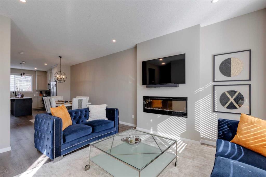 UPGRADES!! UPGRADES!! Welcome to the beautiful semi-detached previous show home of Morrison Homes. The house was built in 2019 but the possession was taken in 2023 where modern design meets unbeatable value, experiences 9-foot ceilings, an open-concept layout, and stylish designer touches throughout including gemstone lights. The kitchen boasts tall cabinets, elegant quartz countertops, and sleek stainless steel appliances. Relax and unwind in the great room, where a cozy fireplace takes center stage, framed by large windows inviting abundant natural light. Upstairs, retreat to the spacious primary bedroom, ensuite and large walk-in closet. Two additional bedrooms, a tasteful main bathroom, and an upper-floor laundry room, complete this level. The basement, with roughed-in plumbing, presents an opportunity for future development. Conveniently located near school, parks and lake. This home combines convenience with comfort. Book your showing today!!