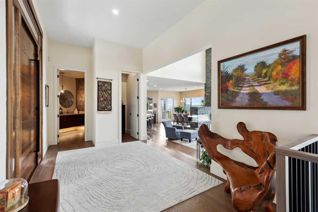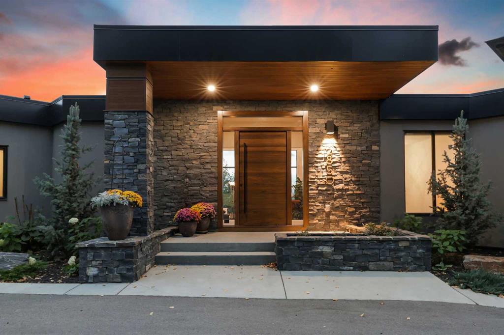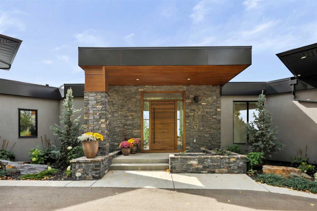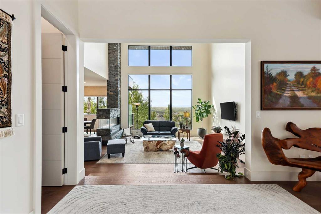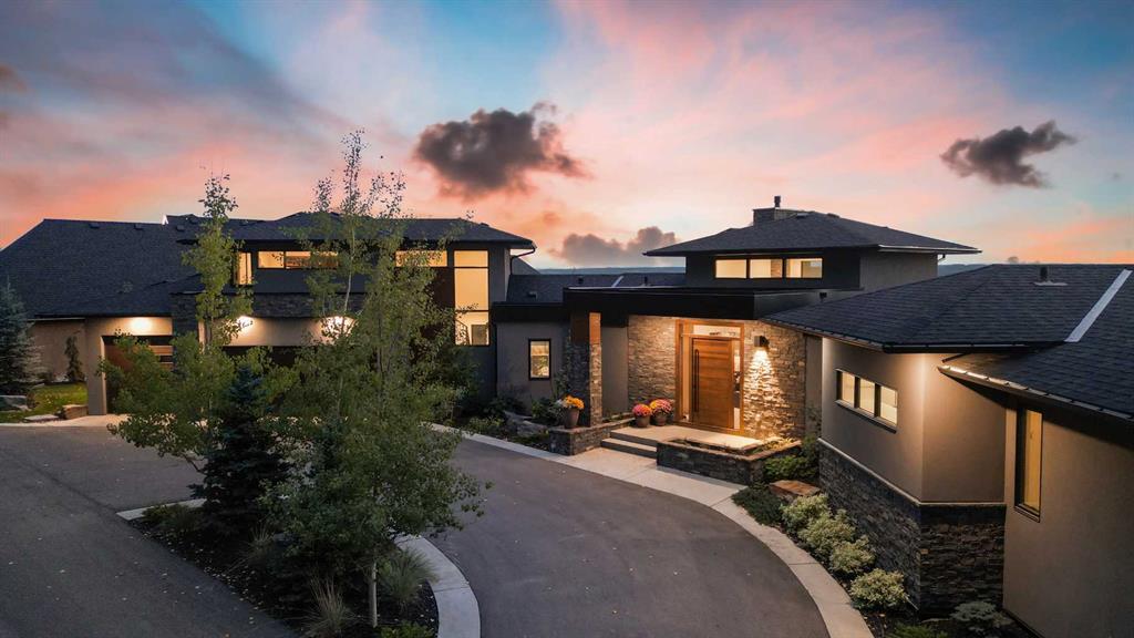 Welcome to a most exquisite estate in the coveted Springbank Hill, where luxury harmoniously meets nature. This breathtaking modern classic offers over 5000 SqFt of developed living space, along with panoramic Rocky Mountain views. Designed for sustainable and timeless luxury, this fully customized home features one of a kind landscaping, including a 13’ retaining wall, as well as extended foundation walls and deck pillar supports. For efficiency, there’s a solar roof system, radiant in-floor heating, and triple-pane windows, contributing to year-round comfort and sustainability. Inside, the main floor immediately welcomes you with stunning unobstructed mountain views. Step down to the gorgeous living room which seems to soar into the panoramic western view with full height windows and nearly 18’ ceiling height. A tastefully appointed Chef’s kitchen features Miele, Wolf and Cove appliances, including an induction cooktop, steam convection oven, surrounded by Maple cabinetry and “Taj Mahal” granite counters, not to mention the walkthrough butler’s pantry, quietly nestled behind the main kitchen space. The 12 fan, 3 sided fireplace provides a cozy option for winter warmth to the living, kitchen and dining areas as well. The primary bedroom suite beckons just beyond the main floor den, which itself features built in storage solutions that include both hidden drawers and shelved cupboards. The primary quarters offer morning vistas of snow capped mountains glimmering in the morning light, as well as the generously appointed 225 sqft ensuite with heated tile floors, dual vanity and central makeup station, not to mention the oversized walk in shower and deep soaker tub with prime viewing position. Downstairs, you’ll find three more spacious bedrooms, each with mountain facing views, two more full baths, an exercise or flex room, and a generous recreation room that opens directly to a ground floor stone patio. The heated three-car garage includes an oversized bay with 13' ceiling for your enthusiast’s car lift, as well as 220V power for your future EV or power equipment. Above the garage, you’ll find a large flex room, the perfect private office, or potentially a guest room, featuring a private 3 pc bath and exclusive upper balcony with unparalleled mountain view. Outside living begins indoors, with the purpose built greenhouse directly off the kitchen, where you’ll nurse your own vegetable garden through the winter, or harvest fresh herbs year round. The massive upper deck provides scenic views (of course), and generous entertainment space alongside the protected DCS outdoor kitchen. The impeccably manicured terraced yard features stone steps and pathways, a steel fire pit and space to fully enjoy outdoor life above the fray. Nestled in exclusive Elkton Ridge Estates, this blend of modern style & classic luxury provides a timeless and serene setting. Schedule your private viewing to fully appreciate this masterfully designed property.