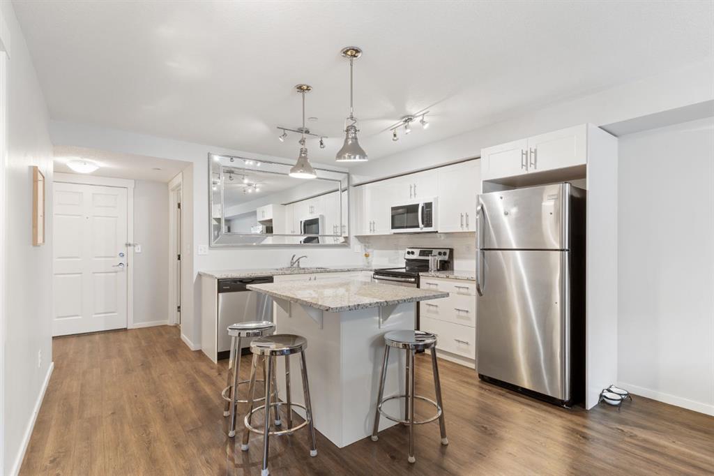 Welcome to Copperfield Park III, developed by Brad Remington Homes. This well-managed condo features low condo fees, quick access to major roadways, nearby shopping and schools, making it the perfect place to call home. This 2-bedroom, 1-bath unit offers over 700 sq. ft. of living space, ideal for everyone. As you step inside, feel the cool air from your AIR CONDITIONED unit and see the lunary of the GRANITE countertops in the kitchen and bathroom . Another great feature is the IN-SUITE LAUNDRY, On the deck you have NATURAL GAS for your BBQ with quick disconnect. One of the highlights of this home is its community. Copperfield is a very community-oriented place to live, with great schools, friendly neighbors, shopping, eateries, and cafes. You’re less than a 5-minute drive from the New Brighton Athletic Park and the 130th Ave Shopping District, which offers over 165 different stores and restaurants. You’re also just minutes away from Stoney Trail and Deerfoot Trail making commuting anywhere in the city a breeze. 10 minute drive to South Health Campus as well. Call your favorite Realtor today to book a showing!
