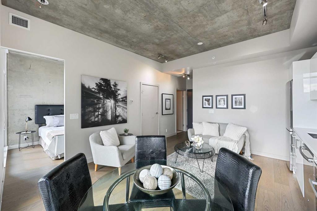 Experience urban living in this stylish 8th-floor unit at the sought-after 6th and Tenth building, offering breathtaking views of the Calgary skyline, including the iconic Calgary Tower. Whether you’re a first-time homebuyer or an investor, this one-bedroom, one-bathroom apartment combines modern luxury with thoughtful functionality in a prime downtown location. The unit welcomes you with 9-foot exposed concrete ceilings, floor-to-ceiling windows, and a private balcony featuring a gas BBQ outlet—ideal for enjoying morning coffee or evening barbecues with unbeatable city views. The contemporary kitchen is equipped with stainless steel appliances, a gas cooktop, quartz countertops, and in-suite laundry, while smart design maximizes the use of space for both comfort and efficiency. Residents of 6th and Tenth enjoy an array of premium amenities, including a Sky Garden Lounge with an outdoor pool, a state-of-the-art fitness center, a beautifully landscaped terrace, bike storage, and round-the-clock concierge and security services for added peace of mind. Situated in the heart of Calgary’s vibrant Beltline district, the location is unbeatable. You’ll be just steps away from popular brunch spots like The Beltliner, local brews at Last Best Brewing & Distillery, and fine dining at Pigeonhole. Monogram Coffee and Analog Coffee are nearby for your caffeine fix, while casual hangouts like National on 10th and eclectic dining at Cilantro are right around the corner. Outdoor activities and shopping are never far, with the CORE Shopping Centre, Prince’s Island Park, and the scenic Bow River pathways all within easy reach. For convenience, public transit is easily accessible with bus stops just two blocks away and the LRT four blocks from the building. Short-term rentals, including Airbnb and Vrbo, are allowed, offering flexibility for investors. This unit offers the perfect blend of style, convenience, and location, making it a fantastic opportunity in the heart of the city!