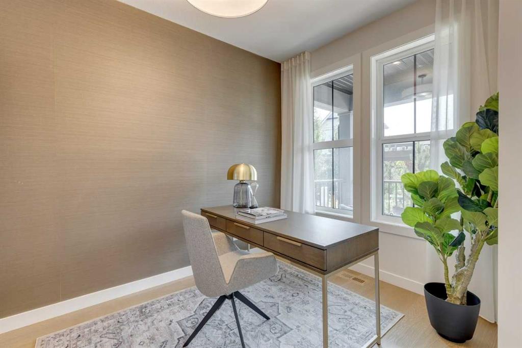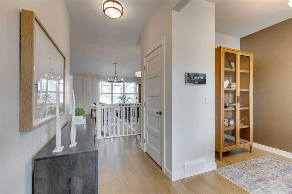**Luxury brand new bungalow green court home in Alpine Park** Welcome to 12 Treeline Lane SW, the LORETTE at 1,387 sq ft is a brand-new move-in ready home, featuring Alpine Park’s popular new urbanist court model design with a rear double attached garage. The exterior features modern FARMHOUSE architecture with Hardie board siding and front porch. This home fronts Hearth Green, which features an outdoor park space that includes community gardens, outdoor fireplace and gathering areas. The interior palette showcases high quality finishings throughout, including vaulted great room, engineered hardwood flooring throughout main floor, quartz countertops throughout. The custom kitchen features HDF cabinetry in Alabaster with soft close doors and drawers, upgraded stainless steel appliances including a built-in fridge and hood fan, granite sink, and champagne bronze hardware. Located off the kitchen is a mudroom attached to the DOUBLE GARAGE. The main floor features a vaulted primary bedroom. Photos are representative.