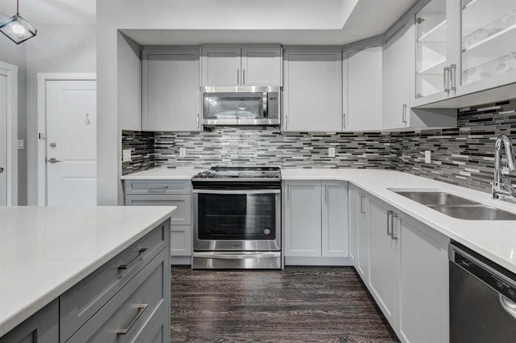 Welcome to #1312, Sage Hill Drive. This condo is ideally located a short walk away from grocery stores, restaurants and public transportation. It boasts 2 bedrooms and two full bathrooms, and comes with a titled parking stall inside the secured and heated parkade, as well as an assigned caged storage locker. Inside, the bright kitchen features gorgeous white quartz counter tops, a designer mosaic tiled backsplash, light grey cabinets, pantry closet, and upgraded stainless steel appliances. The kitchen space leads straight into the living room providing both the convenience and comfort of an open concept design. The generously sized patio has lots of room for furniture and is the perfect outdoor space to sit and relax, or entertain your guests. The master bedroom offers ample storage boasting a his-and-hers closet and features a convenient 3-piece ensuite with large shower. The second bedroom is located across from the living room for extra privacy and is adjacent to the well appointed full 4-piece bathroom. The condo is finished off by a large laundry room with even more storage as well as a front hall closet. With this many features and conveniences, this condo won't be on the market for long! Book your private showing today!