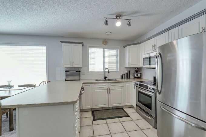 This beautiful, sunny two-bedroom condo unit has two full bathrooms and is located in desirable Springbank Hill just minutes away from the Westhills, Signal Hill and Aspen Woods shopping districts, the Westside Recreation Centre, and provides quick access to transit and Stoney Trail. Newly painted, the unit has a bright, open floor plan with high-end stainless-steel kitchen appliances, a peninsular breakfast bar and a natural gas fireplace. The in-suite laundry boasts full-sized, high-efficiency appliances and shelving for storage. New plush carpet and waterproof underlay were installed in July 2023. The unit features a sunny south-facing covered deck with a natural gas BBQ hook-up, a large on-deck storage locker, two titled parking stalls in the heated underground parking facility with a newly constructed storage cage perfect for housing tires and larger items. The property provides secured bicycle storage in the underground parking facility and is located with easy access to bike trails and Griffiths Woods Park. A bonus amenity space with reading materials and a pool table is located above the third floor. A new security system, installed at the property in 2024, provides digital access to the building and its parking facilities. The primary bedroom, with its walk-in closet, includes a 4pc ensuite with a soaker tub, separate stand-up shower and linen closet. A second 4pc bathroom is located immediately adjacent to the second bedroom with its own linen closet; both bedrooms are also equipped with lighted ceiling fans. The foyer & bedroom closets as well as the on-deck storage locker are outfitted with organizer units to maximize utility. With its proximity to shopping, schools, parks, transit and easy access to Stoney, Sarcee, Glenmore and Crowchild Trails, this move-in ready unit has it all. Book your showing today! Click on the Feature Sheet icon above to view video and the Virtual Tour icon above to view the Tour. NO DOGS ALLOWED.