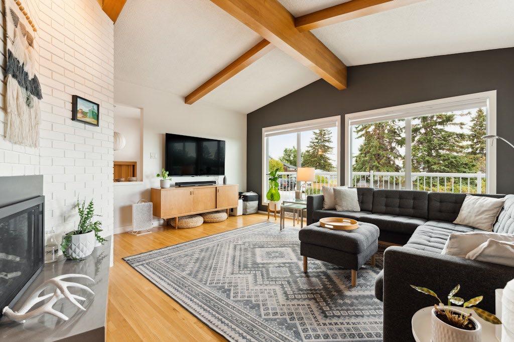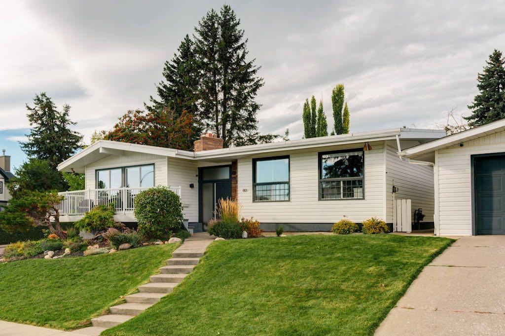 Rare opportunity to purchase a unique and beautifully updated bungalow in the prestigious Foothills Estates. Beautifully appointed sprawling bungalow perched on a huge corner lot that's approx. 75ft x 127ft with Downtown views and a wrap-around south facing patio. This stunning home is the perfect mix between a mid-century gem and modern convenience. Offering 3 bedrooms on the main level, 2 bedrooms on the lower level, 3 bathrooms and a triple detached garage. So much parking on-site for a total of 7 spots - 3 indoor garage spots, 3 driveway spots and 1 RV parking spot next to the garage on the east side. 1 of the single garage doors also opens into the backyard oasis. Fully landscaped front and back yards with mature trees, plants and shrubs. You'll never want the summer nights to end in this backyard with the newer pressure treated wood deck with built-in benches and garden beds, a concrete pad that's an ideal spot to set up patio furniture to entertain and relax on while having the luxury of privacy with tall trees and few neighbours. The backyard can even accommodate your fur family members with the gravel dog-run area with breezeblock fencing. Live in comfort during Calgary's warm summers with central air conditioning! This gorgeous and thoughtful kitchen design offers an island with a quartz waterfall countertop and bar height seating, stainless steel appliances, George Nelson inspired light fixtures, herringbone tile backsplash, tons of storage and counter space including an ideal spot for a coffee bar set up and a chalkboard wall. Off the kitchen is a walk-in pantry with additional storage space and a laundry area with front load laundry machines. Enjoy spending time in the living room while appreciating the preserved architectural features like the vaulted exposed beam ceiling, looking out the windows with the elevated views or getting cozy next to the gas fireplace. Down the main hallway is the primary bedroom with a 2pc en-suite bathroom, 2 additional bedrooms and a full 4pc bathroom. The fully developed lower level is comfortable with 2 bedrooms, a 3pc bathroom, family room, workout area, and plenty of storage space. Perfectly positioned, this home offers unparalleled convenience, proximity to great schools, University of Calgary, multiple Hospitals (Foothills, Childrens and the soon to open Cancer Centre), Nosehill Park, The Calgary Winterclub, Confederation Golf Course and easy access to downtown and the mountains. Take advantage of this exceptional opportunity to embrace living in one of Calgary's most sought-after neighbourhoods.