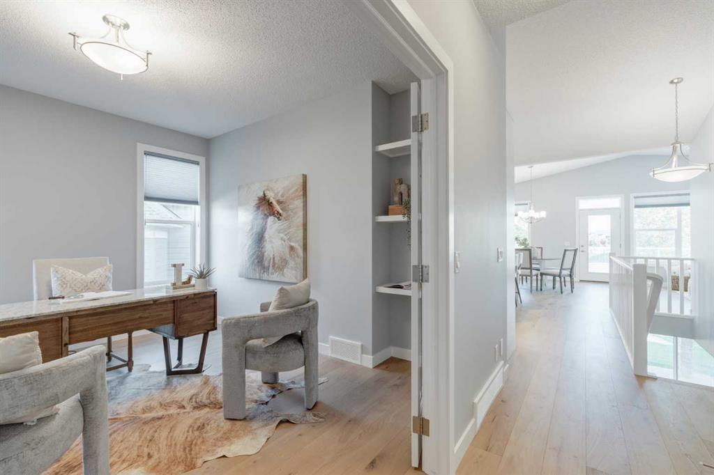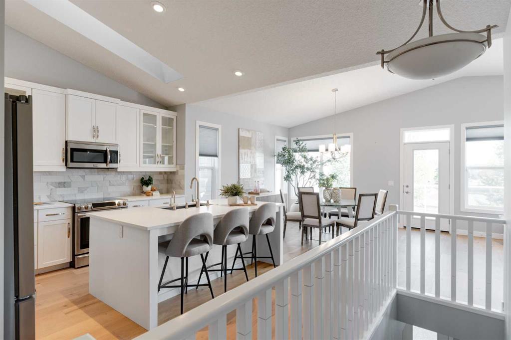 This stunning fully developed 3 bedroom, 2.5 bathroom bungalow has been meticulously maintained and is perfect for a family, down-sizers, or those wanting to enjoy the comforts of a bungalow. Situated on Walden Park, this sprawling 1,569 square foot walkout bungalow is beautiful both inside and out and has nearly 3,000 square feet of developed space. Upon entering the home, transom windows flood natural light into the hallway and throughout the home. There is a large den/office space at the front of home with french doors for added privacy. The timeless white kitchen is complete with quartz countertops, a large pantry with custom shelving and glass cabinetry completing the open and airy feel throughout this home. The kitchen opens to the large dining area and expansive living space that is complete with a central gas fireplace with a custom surround. A wall of windows overlooking the park allows for natural light to keep the space bright all day long, regardless of the time of year and all windows have Hunter Douglas up/down window coverings. A large deck can be accessed off of the main living area and has views overlooking the park. The primary suite spans 13' x 15' and is complete with a 4 pc ensuite with dual sinks, a tiled walk-in shower and a private water closet as well as a large walk-in closet with custom shelving. A laundry room with a sink and additional storage complete the main level. Warm hardwood flooring flows throughout the main level, down the stairs and throughout the entire walk-out basement - meaning no carpet! The lower level offers a living area with a cozy gas fireplace, a games area / flex space with a wet bar complete with a bar fridge and dishwasher, two more large bedrooms, a full bathroom and endless storage! The lower level concrete patio is covered and there is plenty of green space in the large yard that also has a gate leading into Walden Park. This beautiful move-up bungalow has an oversized double attached garage, exposed aggregate driveway, walkways and patio - providing a low maintenance home that has ample space for entertaining and visiting guests or family. Central A/C adds to everyday comfort in this beautiful like-new home. This home checks every box - a sprawling bungalow with walkout basement that backs onto a park and has been heavily upgraded throughout and meticulously cared for.