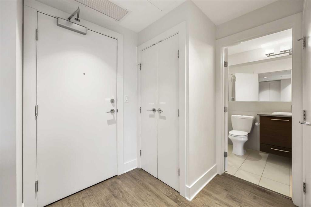Experience elevated living in this luxurious condominium, situated in the heart of Bridgeland, one of the city's most sought-after and vibrant neighborhoods. This meticulously maintained, modern 2-bedroom, 2-bathroom unit offers sophisticated style and thoughtful design, perfect for those who value quality and comfort. Enjoy seamless access to downtown, the East Village, and the river pathways—whether you walk or bike—and take in the charm of the local shops and cafes that define this trendy community. Inside, the open-concept layout is ideal for entertaining, flowing out to an expansive patio with tranquil park and city views. The sleek, gourmet kitchen is a chef's dream, featuring premium stainless steel appliances, including a gas stove, a peninsula breakfast bar, and ample storage options. The living room is bathed in natural light, creating a warm, inviting space for relaxation. The primary bedroom is a serene retreat with a spacious walk-in closet and a spa-inspired ensuite, maintaining the same contemporary elegance as the rest of the home. A second bedroom, ideal for guests or a home office, a well-appointed cheater ensuite with a walk through closet, allowing the condo to have two master suites. In-suite laundry, and a titled underground parking space add to the convenience of this residence. The building itself offers an array of top-tier amenities, including a fully-equipped gym, yoga studio, stylish party room with a full kitchen, theatre room, and a courtyard with a barbecue area. This exceptional condo in an outstanding building is perfectly located, just steps from everything you need—from organic markets to public transit—offering an unparalleled urban lifestyle.